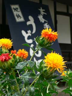 旧廿楽家を移築したべに花館の母屋桶川と紅花紅花江戸時代に山形の最上紅花につぐ生産地だった桶川は近年紅花を市のシンボルとして市民の間に浸透させて来ている。6月には紅花祭りも開催され人気を呼んでいる。紅花は染料の材料として珍重され江戸時代には重要な特産品として桶川宿を発展させたようだ。明治時代には化学染料の普及によりその栽培は急速に衰えたらしいが、近年紅花栽培を手がける農家も現れて市のシンボルとして染物や食品としての需要を喚起しているようだ。その紅花栽培エリアの中心に桶川市べに花ふるさと館が有る。桶川市べに花ふるさと館よく整備された駐車場に車を止めて施設に向うとまずは立派な長屋門がある。建物のこしらえは時代劇に登場するような豪農そのものである。長屋門をくぐると正面に母屋がその威容を誇る。大広間と土間の有る本格的な作りだが本物の建物を移築した際に現在の施設としての使い勝手を考えた間取りや調理施設などが現代的にアレンジされている。風情の有る大広間大広間は開放されてうどんや蕎麦を食べる客席となっている。土間も一部はみやげ物や特産品が並べられているが客席も有る。座っているだけでタイムマシンに乗ったような懐かしい空間に運ばれたような気がしてくる。みやげ物を見ても懐かしい駄菓子なども並ぶ。手打うどん一番人気の田舎汁うどん600円桶川産や隣接する北本市の契約農家から仕入れる地元産の小麦100パーセントで作る手打うどんがここの名物である。ちょっと褐色かがった農林61号の小麦粉を施設内の別棟で完全手打している。数名の職人さんがうどん・蕎麦を鮮やかな手つきで打っている。また桶川産のソバ粉を使った蕎麦も名物である。季節にもよると思うがうどんの方が人気が高そうだ。人気メニューは田舎汁うどん・鴨汁うどん・きのこ汁うどんなど。冷たいうどんを温かい汁で食べる武蔵野うどんだ。鴨汁うどん700円田舎うどんは季節の野菜と豚肉が温かい汁に入っている。これにうどんを入れてズルズルと啜る。地粉の香りとコシというかネバリと言うかモチモチした食感が楽しめる。鴨汁は鴨とネギの黄金の組み合わせ。焼色のついたネギが香ばしい。濃い目の汁と鴨の脂がよく合う。薄めにスライスされた鴨も柔らかく仕上がる。一般的なもりうどんをはじめとして定番メニューがそろっているのでどうぞ何を食べようか迷ってください。人気の紅花かき揚げ新弟子150円大半の人が頼む天ぷらが紅花かきあげ。大きさにより新弟子・舞の海(二人前)・小錦(4人前)と大きさが大きくなる。かき揚げには紅花が入っている。紅花は食用としても利用される。ちょっとほろ苦いような気もするが漢方薬にも使われるというから薬効も期待できそうだ。季節のイベント紅花の咲く頃は6月中旬。ちょうど今頃から7月にかけて。この一帯の紅花畑は見事な花を咲かせると言う。紅花祭りをはじめとして・七夕や十五夜など季節をテーマにした催事が施設内で行われる。また特産物や産地直送の野菜や草花などを売る売店も人気が高い。生産者の名前が書かれた農作物は新鮮でしかも安い。かかえきれないほど買って帰る人もいるようだ。紅花の季節には紅花の切花も並ぶ。体験教室蕎麦打ち体験教室蕎麦打ちや陶芸、木工、染色などの企画が工房で開催される。蕎麦打ち教室を体験させていただいたが15名の参加者いた。人気で毎月キャンセル待ちが出るほどだという。蕎麦粉7割・小麦粉3割の蕎麦を2時間の教習で打って試食してお土産としてもって帰る。自分で打った蕎麦とメンバーの打った蕎麦など見比べてワイワイと楽しいひと時を過ごせる。はじめて蕎麦を打つという人も立派に打っていたから初心者の方も安心して参加できよう。参加費用は蕎麦打ちの場合材料費込みで2000円であった。(2006年6月の場合)夏休みには子供向けの染色や饅頭作りの企画があるようだ。イベントに参加して食事をしてお土産を見繕って帰ると充実した日になること間違いなし。桶川市民になったつもりで楽しめる。毎月の催事情報からも目が離せない。【桶川市べに花ふるさと館DATA】363-0001埼玉県桶川市加納419-1電話048-729-1611(各種問い合わせ先)開館時間午前9時から午後9時30分休館日 月曜日 但し祭日・振り替え休日の場合は開館。入館無料・無料駐車場有うどんコーナー営業時間午前11時より午後8時まで。べに花ふるさと館サイト※記事内容は執筆時点のものです。最新の内容をご確認ください。※メニューや料金などのデータは、取材時または記事公開時点での内容です。