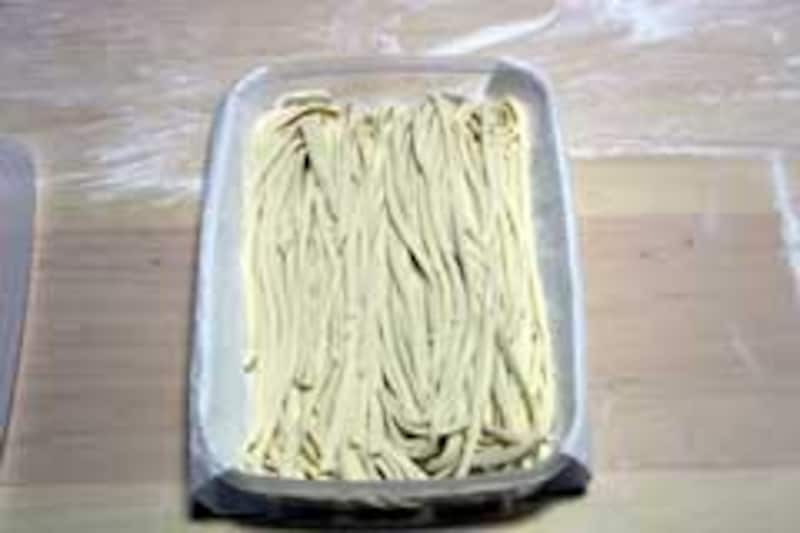 塩が入らないため生地がだれやすいので切り終えたら密封容器で冷蔵保管する。