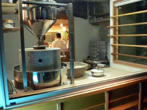 夜の蕎楽亭うどんも美味い蕎麦屋 第一回 蕎楽亭(きょうらくてい)蕎麦店の最近のトレンドは自家製粉。蕎麦粉のコントロールを自分が納得できるまで行うために蕎麦の産地、生産者と契約している蕎麦店も珍しくない。蕎楽亭もそのこだわりの蕎麦屋である。しかし今回訪問して驚愕の真実を知ることになった。小麦も自家製粉店頭の打ち場には電動の石臼が置かれている。蕎麦粉を挽くためのものとは想像できるが小麦も挽くそうだ。これには恐れ入った。半端な量を挽くわけではない。打ち場と石臼店で使う分を挽くだけでも相当な時間と労力が要るだろう。全粒粉から篩にかけて必要な小麦を採取するには篩いの作業だけでも気が遠くなりそうだ。蕎麦の自家製粉も大変だが小麦を自家製粉するというのはその手間を考えたらうどんのコストをトコトン上げてしまうだろう。ほとんどは人件費と思われる。驚きの自家製粉うどんは農林61号ベース小麦は茨城産の農林61号と群馬産の農林61号。そして現在はテストとして群馬産の絹の波もブレンドしているという。長期熟成の末にできるうどんはいわゆる農林61号とはかけ離れた洗練された食味のものだった。うどんは細打ち。3ミリから4mmつやつやのあめ色。透明感がある喉越しが良いものである。ほのかな塩味。味の乗っているうどんで弾力も申し分ない。絶妙の茹で加減とみた。氷を投入しているのを見たので締めは急冷+水洗いのようだ。かなり丁寧に念入りに洗っていた。手打ち冷麦もう一つ名物がある。冷麦である。並蕎麦と冷麦のあいもり手打ちで作られる冷麦は素麺と呼んでもよい細さでキラキラと光り輝く。もっちりとした弾力と細さに似合わないようなコシの強さ。そしてこれも農林61号とのこと。細さは根津の釜竹の細打ちと拮抗するが真っ白な釜竹に大してこの淡い褐色の麺はまた確かな存在感を持つ。くっきりとした淡色のうどんだしに良く合う。淡口醤油の塩加減とほんのり感じる味醂の絶妙のバランス。色・味・申し分ないうどん、冷麦用のつゆである。カレーうどん20数種類のスパイスや果物を調合するというカレーうどん牛すじの煮込みの入ったサラサラ系カレーうどん。かなり辛い方だと思うが・・・私は辛いのが苦手ということを考慮して話を理解して欲しい。甘みは無くすっきりした後味。油っぽさも無いのでさらっと入る。濃縮豆乳を仕上げに入れる。ヨーグルトかと思うほどの独特の風味。良く煮込まれた牛すじを噛み締めるととろけるように旨みがほとばしる。かなり手の込んだ一品であろう。うどんは・・・カレーうどんとなるとうどんの個性はほとんど消えるがコシは十分。個人的にはカレーうどんにはもう少しくたっとしなやかさと優しさが欲しい。これは好みの問題であるのでここのカレーうどんが大好きと言う人も大勢居ると思う。蕎麦定番のざる蕎麦さてこちらが本命。当然お客さんの目的はこちらのほうが多い。蕎麦は思っていたよりも盛が良くあっという間になくなるという種類のものではない。推定生麺で180g程度はあるのではないか。並蕎麦はニ八蕎麦のようで黒めで星もある。十割蕎麦はより黒く、2つの味を楽しめる2色そばが人気のようだ。蕎麦はご主人のふるさとの会津産や茨城産。店頭の臼で製粉する。辛汁は少し薄色の透明感の有るもの。甘みは強くなくくっきりとした味。素材は利尻に枕崎の本節と干し椎茸にイリコとある。イリコが入るのは珍しい。もっともイリコの風味はほとんど無い。丁寧に下処理されているのだろう。江戸蕎麦の粋を感じさせる。蕎麦湯で割ると味が膨らむ。天ぷら目の前で揚げたてを順に出してくれる天ぷら屋さん風のくふうはカウンターに座ったときの特権か。活才巻海老2本・野菜3点・穴子、アツアツを塩で食べる。蕎麦屋での幸福な時間が流れるかも。ゆったりした気分と時間の余裕を持ち、お酒も飲める準備をして出かけたい。つまみ系メニューメニューは豊富で30種類を数える。多すぎない量で居酒屋的なボリュームはあえて避けているように見える。それでも多品種の食べてみたいと思わせるメニューが大変多い。ついつい長居してしまいそうだ。●白海老のから揚げ富山産の白海老を軽く衣をつけてあげている。一尾単位で揚げている様でかき揚げではないがかすかに衣に塩味が付いているようで美味しい。レモンが添えられている。ざるうどんと白海老から揚げ締めには蕎麦かうどんは必須。するっと入って明日の活力になる。【蕎楽亭データ】住所: 東京都新宿区神楽坂3-6 神楽坂館1階 電話: 03-3269-3233 定休: 日曜・祝日 平日: 11:30 - 15:00 / 17:00 - 21:00土曜: 11:30 - 15:00 / 17:00 - 21:00最寄: 飯田橋 / 神楽坂 / 徒歩 5分 蕎楽亭のWEB主なメニューそば・うどんざる系 ざるそば 900円 ざるうどん 900円 ひやむぎ 900円 十割そば 1,000円 めおともり そば&うどん 1,000円 むぎめおと そば&ひやむぎ 1,000円 二色そば そば&十割そば 1,050円 冷たいもの おろし 1,000円 辛味おろし 1,000円 つけとろ 1,