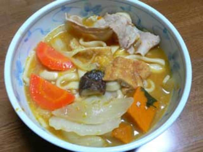 野菜はかぼちゃ・ジャガイモ・ニンジン・シイタケ・タマネギ・ナガネギ・ハクサイなど季節の野菜。(時期により変化する可能性が有ります)