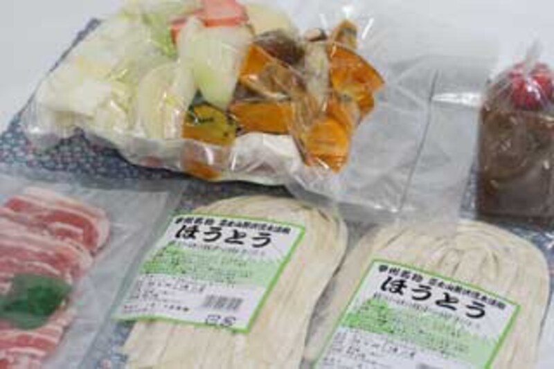 その名も豚ほうとうセット。野菜をはじめ肉までセットになったほうとうの詰め合わせ。後は煮込んで食べるだけ。
