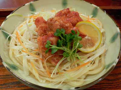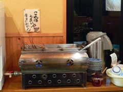 野口製麺所 テラス席もある野口製麺所といううどん屋さん製麺所という名称はうどん好きの人なら即うどん屋を連想すると思います。讃岐では製麺所がうどん屋も兼ねているところが多いからです。今では製麺所の名前でチェーン店展開するうどん店もあるほどです。さてこの野口製麺所一風変わっています。(笑)まずは立地。東村山と言えば・・・なんと言っても武蔵野うどんの聖地。近所には有名な武蔵野うどん店がたくさん有ります。その武蔵野うどんの真ん中に讃岐うどん店です。駅からはかなり離れた讃岐の製麺所と同じ様な雰囲気で店は有ります。店主の間野さんは讃岐うどんに魅せられて讃岐のうどん店を数百食べ歩き、自分のうどんを確立しました。武蔵野うどんとはかなり方向の違う純な讃岐うどんが食べられます。小麦粉は讃岐の製粉所から挽き立てを取り寄せます。だしはイリコと昆布ベース。シンプルです。醤油も讃岐産とこだわります。平日に使用する小麦粉と土曜・日曜に使用する小麦粉を代えています。平日はオーストラリア産の小麦粉をベースに、そして週末は讃岐の地粉さぬきの夢2000を使います。3年の歳月でうどんできばえは圧倒的に安定して素晴らしいうどんが出ます。開店当初課題とも思えたダシの完成度も現在では文句無く素朴な中にも味があるものに変化しています。讃岐式おでんも有ります讃岐式おでん、セルフの天ぷら、海苔巻、うどん玉の持ち帰り、生麺の販売等々・・・ここは讃岐かと思うほどです。天ぷらはセルフです武蔵野うどん・村山うどんの文化圏での讃岐うどん店ですからうどん好きのお客さんも多そうです。メニューもほとんどが讃岐流なので武蔵野うどん的なメニューはほとんどありません。肉汁うどんを意識した猪肉汁うどん900円が独特かもしれません。定番うどんメニュー讃岐定番のぶっかけうどん500円冷たく締めた麺でぶっかけうどん。平日のうどんはかなりしっかりした弾力と押し返しを感じるうどんです。麺線の角が立つしっかりした腰を感じさせます。小量の汁をぶっかけたこのメニューはうどんの味をストレートに感じることが出来ます。かけうどん500円+かき揚げ60円温かい汁をはったかけうどんはぜひ天ぷらも載せましょう。各種天ぷら60円。素朴さを感じる天ぷらとこのかけうどんのつゆが良く合います。ほとんど透明に近い昆布とイリコベースのつゆ。インパクトを感じさせるような派手さは有りませんがしみじみと体に優しく入っていくつゆです。天ぷらの油が溶けて「イイカンジ」になります。寒い季節限定のしっぽくうどん季節メニューのしっぽくうどん700円野菜がたっぷり使われたいわゆるけんちんうどん。肉系の味に頼らない野菜を中心にした素朴な味わい。体の芯から温まるような滋味を感じます。この日食べたうどんはさぬきの夢2000でした。夜の限定のメニュー(土曜・日曜)夜限定かしわあんかけうどん800円かしわあんかけうどん。鶏のから揚げをあんかけにして冷たいうどんに載せた一皿です。さぬきの夢2000の甘みのあるうどんの味わいとから揚げと和風あんかけのコラボレーションは意表をつかれました。サラダ感覚で食べられます。他にも面白そうな創作メニューがあります。機会をみつけてチャレンジしたいものです。開店から3年余り。客が押し寄せるというタイプのお店ではありませんがうどんと同じ様に滋味があるお店です。平日午後3時30分頃の閉店。その日のお客さんの来店次第では3時頃に閉めることも有るそうです。週末の土曜日曜は夜も営業。18時から21時頃まで。週末限定メニューがあります。少し手の込んだうどんメニューやあてになるようなつまみ系も増えます。週末限定のさぬきの夢2000で作るうどんが素晴らしい出来映えです。私的には過去最高の製麺技術に出会った感じです。お薦めできます。土曜の夜・・・ひそかな楽しみになるかも。とはいえちょっとだけ不便な立地なので車で移動するとお酒は飲めませんね。●野口製麺所住所:東村山市野口町4-46-1 電話:042-392-0856営業時間:平日は午前11時~午後3時ごろ土・日は午前11時~午後3時ごろ、午後6時~9時定休日:火曜日 2009年よりうどんの地方発送有り主なメニュー温カレーうどん 750円 牛肩ロースうどん 700円卵とじうどん 600円 梅うどん 600円釜卵うどん 500円 釜あげうどん 500円かけうどん 500円おこさまうどん650円(うどん+プリン)冷猪肉汁うどん900円 肉みそぶっかけうどん 650円温卵ぶっかけうどん 600円 ぶっかけうどん 500円梅しそぶっかけうどん 600円 梅おろしうどん 600円ぴり辛みそねぎうどん 600円 冷やしうどん 600円卵しょうゆうどん 550円 辛しみそうどん 550円もりうどん 500円 しょうゆうどん 500円夜メニュー土曜・日曜のみかしわあんかけうどん 800円 のぐちめんたいうどん 750円ぶたバラぶっかけうどん 750円 かきあげうどん(大かき揚げ)700円キムマヨぶっかけうどん 650円 牛ロースカレーうどん 1000円おでん各種60円 天ぷら各種60円おにぎり・海苔巻 100