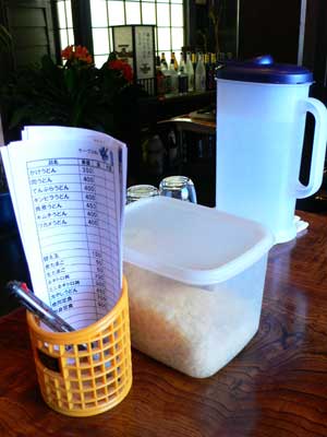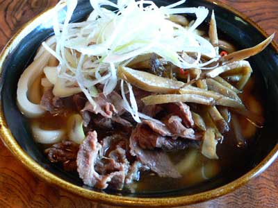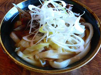 ちゃらんぽらん外観 ちゃらんぽらん 富士吉田市2008年は富士吉田によく通っている。そんな中ちょっと驚いたうどんに出会った店がある。その名はちゃらんぽらんちょっといい加減な名前のような気がするが、店名は緩い気持ちでくつろぐような雰囲気を表しているのではないかと想像する。黒を基調とした外観はお洒落である。店内はカウンターと仕切りのある小部屋タイプの座敷と大広間タイプの座敷。和風の落ち着いた雰囲気のあるお店である。盛り付けのくふうが光る夜は居酒屋さんのようで昼はうどん店の二毛作らしい。立寄ったのはちょうど昼飯時の12時少し前。先客ひとり。私の後からは続々とお客さんが入店してきた。あっという間にほぼ満員だ。注文の仕方はテーブルにある紙に注文を書いてお店の人に渡すシステム。吉田では比較的一般的な注文の仕方である。素朴の中に洗練された見事な吉田うどんテーブルにあるオーダー票注文は『肉きんぴらうどん』メニューには肉うどんが有り+きんぴらを載せてもらうという言い方が正しいかも。開催中(2008年4月1日より6月30日)のスタンプラリーのクーポン券を使って味玉もつけていただく。肉キンピラうどん450円程なくして出てきたうどんを見てまずは驚く。盛り付けが綺麗だ。料理されたものという美しさがある。上に載せられた斜めに切られた長ネギがこの美しさに一役買っている。うどんは少し幅広の平打ち。ガツンとした噛み応えのあるもの。粉の香りと粉っぽさが良い意味で感じられる。噛み締めてその滋味が口中に広がるタイプだ。そして汁が良い。一口、口に含むと味噌と煮干しの強さが広がる。旨みの強い汁だがけっして雑味や猥雑さを感じさせない。素朴だが十分に完成された料理として仕事がされている汁だ。こうなると箸が止まらなくなる。スズッと啜ってはよく噛んでうどんを味わう。テーブルにある薬味の唐辛子味噌(擂りだね)も入れる。薬味の辛味(擂りだね)・入れ過ぎ注意入れすぎると辛いので要注意。この薬味もおそらく自家製だろう。箸休めには漬物を小皿に取っておこう。これも吉田うどんのいくつかの店の特長。セルフサービスの漬物が用意されている。うどんアップ 迫力のうどんこのちゃらんぽらんは水曜日が定休日のためなかなか来られなかったお店だ。今回は月曜に来たのでたべられた。私的吉田うどんランキングではいきなりトップランクに位置するお店になったことを報告しておきたい。また機会を見つけてぜひ再訪して気になるメニューの角煮うどんや冷たいうどんも食べてみたいと思う。山梨県富士吉田市下吉田1958電話 0555-22-6125営業時間 11時30分から14時定休日 水曜日※記事内容は執筆時点のものです。最新の内容をご確認ください。※メニューや料金などのデータは、取材時または記事公開時点での内容です。