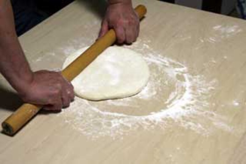 地延し(じのし) 写真をクリックすると次の手順に進みます 打ち粉をふった上に生地を置く 打ち台に打ち粉(コーンスターチ)をふって生地をおきます。 踏んで平にすると簡単 手のひらを広げて体重をかけて生地を大きくします。力の無い人はビニールシートにはさんで踏んで丸く大きくすると簡単にできます。 次の手順は、「本延し」です >> 前のページへ1…111213…17次のページへ
