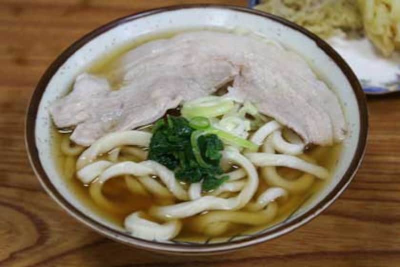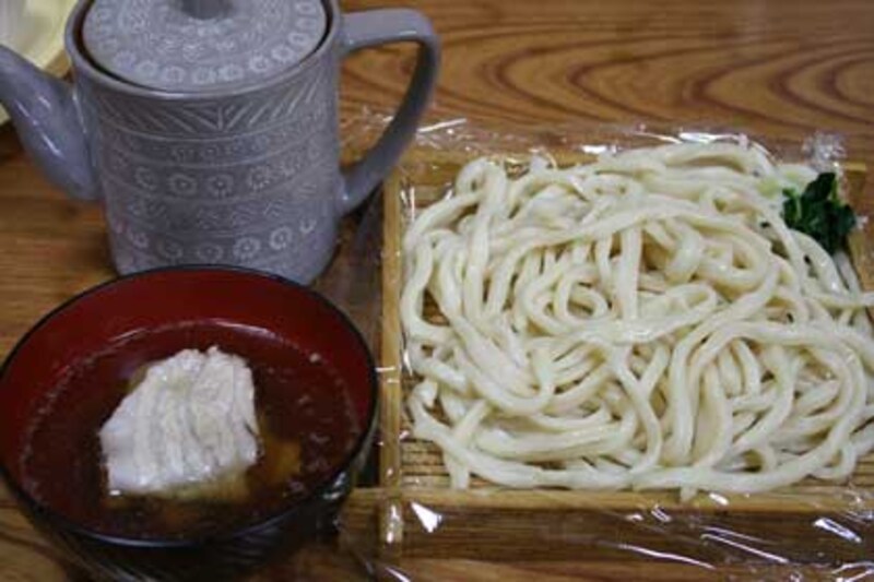 さわだ外観「もっとも面白い武蔵野うどん店はどこか」とたずねられたら今は迷わず『さわだ』と答えるだろう。埼玉県入間市の住宅街を入っていくと手書きの看板が塀にぶら下がっている。入り口にのれんがかかっていなかったら通り過ぎてうどん店を探すかもしれない。車が無いとなかなか行きにくい店である。店に入ると右側が舞台のある座敷でこちらは禁煙エリア。禁煙エリアの舞台のある部屋。舞台にお茶の用意がある。左手も座敷で喫煙エリア。真ん中に厨房、そして奥に打ち場がある。また駐車場から来ると舞台のある部屋に直接入れる入り口がある。それにしてもこの舞台は使われることがあるのだろうか。さわだの謎の一つである。10年ほど前からうどん屋を営むというご主人。独特のうどん打ちをしている。さてその面白さはどんなところだろう。ラップの謎人気メニューは肉汁(にくじる)うどん。関東、武蔵野うどんを代表するメニュー。温かい汁に豚肉が入る。冷たいうどんをこの豚肉の入った熱い肉汁につけて食べる。始めは熱く段々とぬるくなるがその過程でうどんの風味が変わって感じられる。糧と呼ばれる野菜(ホウレンソウや小松菜が多い)が添えられることもある。さわだの肉汁うどんは正確にはもりうどん400円+肉汁50円となる。肉汁+大盛りのうどんこのもりうどんは蒸篭に盛られてくるのだが蒸篭とうどんの間にラップが敷かれてくる。前々から不思議だったが・・・ざるがうどんの水気を切る意味は全く無くなる。答えは食べ切れなかった時のお持ち帰り用ということだった。人によっては食べきれない量なのか・・・私は全く問題ないのだか・・・そう言っても確かにボリューム感はあるのだ。謎を解いたところでうどんについて続けよう。太い竹で打つ地粉うどん持ち上げても姿を変えない剛麺食べて見ると判るのだがかなりの剛麺である。洗練されているというよりワイルドで太さも厚さも均整の取れたものではないのだが汁に良くなじみ、噛み締めると甘みを感じるほどの小麦の香りが感じられる。粉っぽさとは違う鍛えられている旨みが感じられる。小麦粉は地粉の農林61号とのことだ。そのうどんの作り方だが一般的なうどん打ちとは手法が異なる。生地を団子の状態から直径10センチはあろうかと思われる太い竹筒で押しのばす。打ち台に固定された竹に体重をかけて延ばしていく。大きくなったら打ち粉をして向きを変えて畳んで端から押していく。うどんをこの方法で延ばしていくのは初めて見た。仕上は麺棒を使って延ばすそうだが、この太竹筒で1メートル四方程度まで仕上てしまう。麺棒を使って延ばすより早いという。最近は腕や肘などに痛みがあるという店主だが・・・確かにかなりの重労働だと思う。釜前に立ちながら時間を見ては延ばしていく。少しずつ生地を休ませながらの作業とも見えるが、夏場は釜の熱と気温の高さで生地の管理もかなり大変なことだろう。メニューもりうどんの量も多目先にも触れたが人気はもりうどん+肉汁。もりうどん400円大盛りうどん450円。男性はほとんどの人が大盛りを頼むようだ。肉汁は肉の入った椀と瀬戸物でできた湯桶が来る。椀の中は肉と多少の煮汁が入っている。この椀に湯桶から出汁を注いで自分で肉汁を完成させる。初めてさわだを訪問したときにこの出汁に気が付かずに、9割方のうどんをこの豚の煮汁だけで食べた失敗経験がある。出汁は鰹節の良く効いた少し甘めのものだがこのうどんに大変良くなじむ。肉うどんにも追加の出汁が付いてきた寒い時期には肉うどんも人気。かけうどんに豚のバラ肉が載る。うどんが温かいぶん少し食感が優しくなり表面が少し緩んで『すいとん』を思わせるような懐かしい味が楽しめる。1個50円の野菜天ぷらを添えるのも良いだろう。ごぼう、にんじん、たまねぎ、かぼちゃ、春菊から選べる。それにしてもかけうどん350円、かけうどん大430円と安い。肉うどん400円、肉うどん大450円となぜか大盛りの場合の比率が違うが・・・肉汁50円もかなり安く感じる。お茶はセルフサービスだがこれが実においしい。入間は狭山茶生産の中心地だけのことはある。お茶もここに来る楽しみの一つである。上手にお茶を入れてのみたい。急須がたくさん用意されているので自分用に専用に使えるのも嬉しい。埼玉を代表するうどん店の一つとして強く推薦したいお店だ。ご主人も体を労わってずっと続けて欲しいものである。【手打うどんさわだのデーター】住所:埼玉県入間市根岸461-1TEL: 04-2936-1726営業時間: 10:30~14:00定休日 日曜日、月曜日駐車場 有り 店の裏手に10台分程度Yahoo!地図情報さわだ付近※記事内容は執筆時点のものです。最新の内容をご確認ください。※メニューや料金などのデータは、取材時または記事公開時点での内容です。