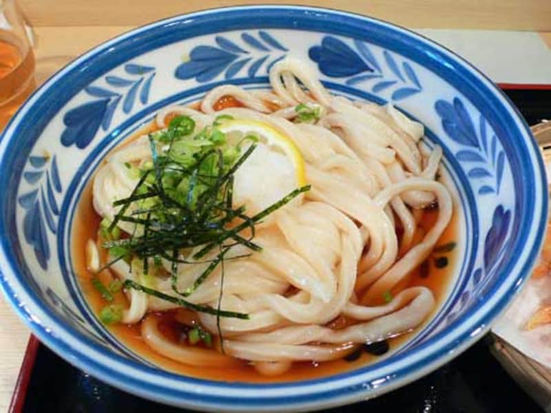 ちょうさ入り口・・・昼時は行列覚悟『ちょうさ』とは聞きなれない言葉だ。うどん店で何を調査するの?って感じだが・・・かの香川県西部(西讃)ではお祭に使われる山車に乗る太鼓台の意味らしい。豊浜に『ちょうさ祭』というのがあるようで盛大なお祭のようだ。ということで『ちょうさ』は讃岐、豊浜の山車のことだと理解すればお店の名前の由来も納得できる。納得できる故郷の味を再現東京にでてきてから数十年経つというオーナーは、東京の讃岐うどん店をほぼ食べつくしたという。結局自分が満足できるうどんとは出会えず自らうどん屋を開業したという。2008年5月開業。ほぼ1年経過して馬喰町の一角に讃岐うどん店として根づいた。近隣は衣類関連の問屋が多い。昼にはご近所のサラリーマンや女性社員などが押し寄せる。うどん+ご飯物(バラ寿司・キツネ寿司・ホタテご飯から選択)の組み合わせの定食650円が大人気のようだ。ちょうさのうどん研究し尽くしたうどんは国産小麦粉のブレンド。粉の香りというかうどんの風味に数十年の想いがこめられている。端正なASWに比べてよりアタリが柔らかく独特の粘りと弾力が魅力であろうか。いわゆる固めのコシとはかなり違った食感だ。すっと歯が入る。少し肩透かしを食ったような反応の後に口の中にうどんの風味が漂う。この優しい味わいが店主が求めていたものだろう。ぶっかけうどんは見た目よりしなやかぶっかけうどんは少し甘めの汁。肩の力が抜けた自然体でうどんに良く合う。かけうどんはさらに穏やかに優しい、ダシはイリコの風味と節の酸味が絡み合う。濃い目のしっかりした味わい。香川から直送の赤いちくわのトッピングが嬉しい。かけうどん480円は旨みの強いダシが魅力うどんの性格が知りたくて冷たいのと温かいの両方を食べたがそれぞれに個性的である。天ぷらも珍しいものがあった。『海老じゃこ天』200円(季節限定)小エビを寄せずにバラバラに揚げたスナック感覚。これは・・・ビールに合うぞ。(笑)海老じゃこ天を付ける天ぷらは揚げたてが出る。この混雑でたいしたものである。野菜天のかき揚げが人気。次回は頼みたい。『いいだこ天』200円(季節限定)も美味しそうだし、東京では珍しい。他にも香川、瀬戸内直送の蒲鉾やしょうゆ豆などがメニューを飾る。店内はほぼ讃岐化しているといっても良いだろう。楽しい店だ。気のいい女将さんは・・・見事な食べっぷりや注文の仕方をするとついつい一品おまけしてしまうような・・・そんな報告がいくつかある。気取らずにランチタイムを楽しみたい。何を選ぶか目移りしそうだ。きっと香川出身の人だと故郷に帰ったような気持ちになれるのでは無いだろうか。讃岐うどん ちょうさ東京都中央区日本橋馬喰町1-12-11TEL:03-3662-5330営業時間 :[月~土] 11:30~16:00定休日 :日曜・祝日Yahoo!地図情報 讃岐うどん ちょうさ付近 讃岐うどん ちょうさのサイト※記事内容は執筆時点のものです。最新の内容をご確認ください。※メニューや料金などのデータは、取材時または記事公開時点での内容です。