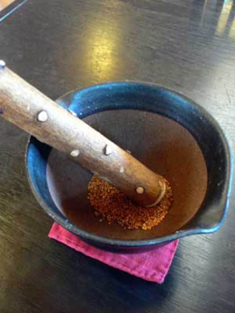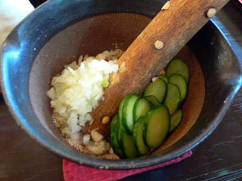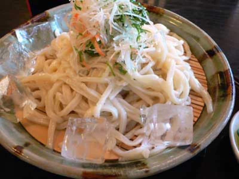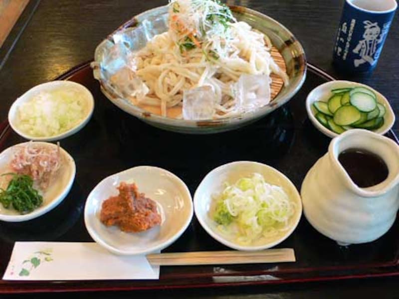泉の里都会に一番近い農村とは埼玉県川島(かわじま)町のキャッチフレーズ。この川島町では近年、町の伝統食『すったて』といううどんで町おこしをしている。町内のうどん店、そば店、和食店、ドライブインを中心にメインメニューとして告知している。『すったて』とはあまり聞き慣れない言葉だが『すりたて』という意味だ。ゴマを擂り、味噌、キュウリ、ミョウガ、長ネギ、タマネギをあわせて冷たいだし汁(または水)でのばして汁をつくる。夏野菜、薬味なども軽くすりつぶす。作りたてのつゆでうどんを啜るのが真骨頂だ。埼玉では良く見られる『冷汁』とほぼ同じようなものと解釈してよいだろう。泉の里訪問したのは創業6年という泉の里。蕎麦とうどんをメインとする蕎麦屋さんのようだが、手作りの焼き菓子などもメニューにあるのでなかなかユニークである。食べたものは『かわじますったて』1000円一番最初にゴマが擂鉢で出てくる注文するとまずは金ゴマの入ったすり鉢が出て来る。うどんが茹で上がるまでにお客がゴマを擂って待っている趣向。まさに『すったて』ゴマが擂り上がった頃うどんと薬味が登場。味噌と薬味類を軽くすりつぶす味噌を溶きタマネギやキュウリ、ミョウガ、オオバを入れて軽く擂りそして出汁で薄めて汁は完成。好みの薬味を加えてつゆの完成。冷たいうどんをできたばかりの冷たい汁で啜る。うどんを冷やしている氷を入れて汁をひやひやに仕上るのも良い。氷は入れすぎると汁が薄まるので注意。泉の里の汁には甘みは感じないが砂糖を入れる汁を出すところも有りそうだ。郷土食や伝統食というものは家庭家庭でそれぞれの流儀があるものだ。清涼感のあるすったてのいろどりうどんは群馬産つるひかりや農林61号とASWのブレンド。地粉が入るすこし緩めの優しい食感。長時間熟成の手のかかったもののようだ。うどんは注文後に茹でられるからゆっくりとゴマを擂ろう。擂りたてのゴマと味噌の風味に夏野菜の強めの香りが食欲を進ませる。盛の良いうどんだがあっという間に完食。さっぱりとしたあとくちの良さが印象的だった。食べたあとの満腹度も高い。盛が良いのですったての食べ比べ、連食はちょっときついかもしれない。うどんの質感は地粉風味のある優しいもの川島町内の『すったてマップ』も作られているので入手して回ってみるのもお薦めである。すったての幟のあるお店で食べられる泉の里 データ住所:埼玉県比企郡川島町吹塚755-1電話:049-291-0132営業時間:11時から15時 17時から22時 ラストオーダー21時定休日: 水曜日駐車場30台有り関連リンク川島町商工会 郷土食 すったて 呉汁 ガイド記事冷汁の作り方※記事内容は執筆時点のものです。最新の内容をご確認ください。※メニューや料金などのデータは、取材時または記事公開時点での内容です。
