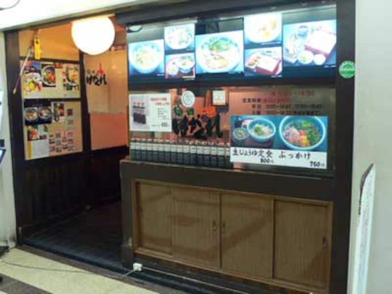 大阪駅前第三ビル地下2階はうどんワールド讃岐うどん店が3店同じフロアで競う激戦区。個性的な3店が競うさぬきうどんの魅力。しかも上手に目指すところを変えて住み分けているとも考えられる差別化。日替わりで食べ歩けるかも。(笑)踊るうどん 梅田店踊るうどん 梅田店『踊るうどん』というネーミングが面白い。本店は以前行ったことがあるが昨年オープンしたこちらのお店は初めての訪問。人気メニューは肉と舞茸天と温玉の載った生醤油うどんやぶっかけうどん。注文したのは『肉舞茸天温玉ぶっかけ』930円。店内はカフェ風の少しモダンなつくり。お客さんの感じも『はがくれ』や『うどん棒』とはちょっと違った感じ。少しお洒落なかんじだろうか。厨房が離れていることもありうどんを作るライブ感はないがその分飲食店として落ち着いた食事ができる雰囲気がある。人気の肉舞茸天温玉ぶっかけうどん(冷)うどんは弾力のある良く伸びるタイプでしっかりと茹で上げられている。牛肉、舞茸天、温玉と具沢山。良いバランスのぶっかけだし。ご馳走うどんとしての完成度は高い。【踊るうどん 梅田店】住所:大阪市北区梅田1-1 大阪駅前第三ビルB2 電話:06-6344-3760営業時間:[平日]11:00~15:30 17:00~22:30[日祝]11:00~15:00定休日:無休梅田はがくれ本店梅田はがくれ本店生醤油うどんが有名な『梅田はがくれ本店』。大坂の讃岐うどんブームの一つの火付け役ともなったお店。本格的な讃岐うどんに負けないうどんの質とこだわりの食べ方を普及させた老舗。今のように生醤油うどんが一般的な食べ方でなかった頃この食べ方から教えてくれた店主の天谷氏。そして今でも生醤油を注文すると店主自ら醤油をかけて作り方を見せてくれる。つくり方、食べ方を知っていてもぜひとも店主の技を見せてもらおう。生醤油うどん(600円)を頼むと「うち(この店)で生醤油を食べたことが有るか?」とたずねられる。ここは素直に食べたことが無い時はその旨返事をしよう。また常連さんでも作ってもらうことをお薦めする。お店により醤油の種類が違ったり醤油ベースの生醤油用だし醤油の作り方は違うのでここは素直に店主の薦めに従う。まずはスダチをしっかりとうどんの上に搾る。そして醤油をかけてくれる。縦3本横1本に見えた。(基本は2往復半ということです)うどんの刺身という渾身の生醤油うどんそして食べ方もレクチャーがある。まずはかき回さない。うどんに粘りを出さないためだという。うどん2本を箸にとりうどんを啜る。たくさん箸でつまんではいけない。うどんはすっと口の名から吸い込まれる。スダチの酸味とすっきりした醤油の香りが鼻腔に抜ける。エッジの効いたうどんの弾力は口の中で押し返してくる。なるほど評判どおりの美味しさだ。たまたま隣りに座った女性は釜玉を注文。こちらも茹で上げたうどんに割りいれた玉子との攪拌と醤油のかけ方のレクチャーがあった。店主のうどんを美味しく食べさせたい情熱がひしひしと伝わる。【梅田はがくれ本店】住所:大阪市北区梅田1-1 大阪駅前第三ビルB2-20号電話:06-6341-1409 営業時間[平日] 11:00~14:45 17:00~19:45[土曜 祝日]11:00~14:30(麺が売り切れしだい終了)梅田はがくれ本店のサイトうどん棒 大阪店香川に本店がある『うどん棒』、大阪店はカウンター席とテーブル席の一般店。いつも混んでいる人気店。本格的な讃岐うどんをかなりリーズナブルな価格で提供している。またメニューが豊富。天婦羅は揚げ立てなど魅力は尽きない。うどんメニュー3店連食を試みたのでこのお店のボリューム感には正直参ったようなところもある。どちらかと言えば頼んだメニューを間違えたということもあるかもしれないが(笑)『ちゅんぽんうどん』800円を頼んだのだ。野菜や肉があんかけになっている具沢山のうどん。大変魅力的に見えたのだ。ちゃんぽんうどんうどんの量も多く、またあんかけと言うこともあり熱い。冷たいうどんなら満腹中枢が働きだす前にいっきに啜りこむということもできたのだがゆっくりと味わうしかない熱々のうどんはしっかりとお腹に効いた。うどんはしなやかな滑らかな気持ち細めのもの。あんかけの汁はダシがしっかりと効くもの。野菜のシャキシャキ感も残る調理のバランスも良い。うーん今度はお腹を空かせて行こう。【うどん棒 大阪店】住所:大阪市北区梅田1-1-3 大阪駅前第三ビルB2電話:06-6458-5518 営業時間:[月~金]11:00~21:00 [土]11:00~20:00 [祝]11:00~19:30定休日 日曜日※記事内容は執筆時点のものです。最新の内容をご確認ください。※メニューや料金などのデータは、取材時または記事公開時点での内容です。