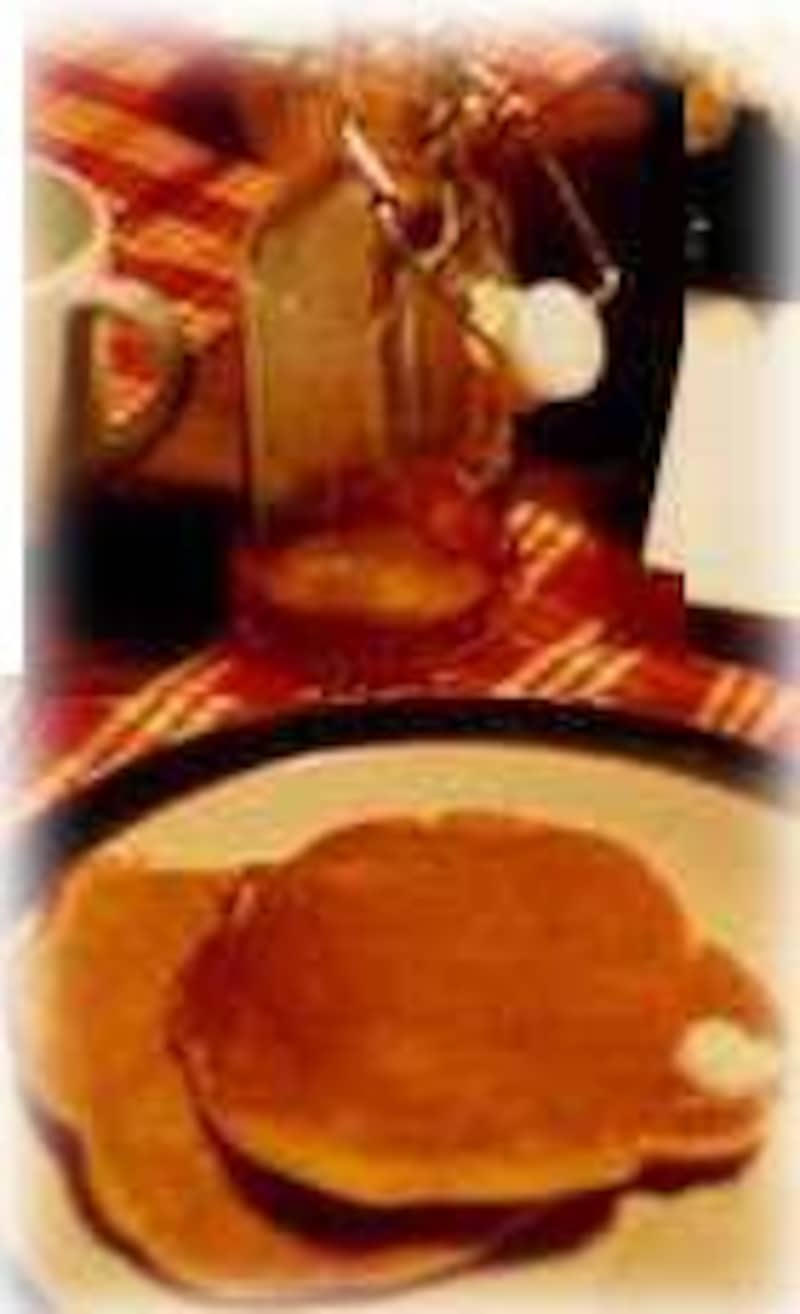 ホテルのパンケーキは美しい色と形。プレーンな 3枚が基本。