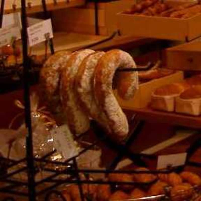 ![]() 例えば甘く炊いたあずきの入ったフランスパン、DAINAGON。 そのかたちには面白いエピソードがあります。 「対面販売だと背面の棚にパンを並べられますが、ここにはそれがないので、 遠くから見ても パン屋さんとわかるように立体的にしたいという考えがまずあって、 アイランドの台にエッフェル塔の形のワイヤーの飾りを作ってもらいました。ここにドーナツ型のクーロンヌなどを 掛けることにしたのですが、 他にも何か引っ掛けるパンを創ろうと思って、だから DAINAGONはフックのような形になったわけです。」 ![]() ここだけの味や形、新しいパンのイメージは、そんな機能面からひらめくこともあるし、 食事をしていて考えつくこともあるそうです。 「もちろん、パンは菓子と違って料理のアイディアを構築的には摸倣できないので、 空気や雰囲気を取り入れたりします。あとはブリオッシュとフォアグラのように お決まりの取り合わせを見て、それだけではないはず、とそれ以外の取り合わせを考えてみたり…。」 おいしさに国境はない、具材等に制約はないという志賀さんが焼くパン、今後も楽しみです。 今年の新作、フォルコンブロートにはドイツでは良く使われているけれど日本では 珍しいフラックスシード(亜麻の実)が入っているそうです。 ![]() ドライフルーツのパンやヴィエノワズリーもおすすめです。 瑞々しいクランベリー、アプリコット、レーズンがぎっしり入ったトロワ・フリュイセックと フランス産小麦を使った小さいショコラのデニッシュ、パン オ ショコラ ペペ、 そしてグリーンレーズンの入ったクグロフ・ルヴァンナチュールも わたしはとても好きです。