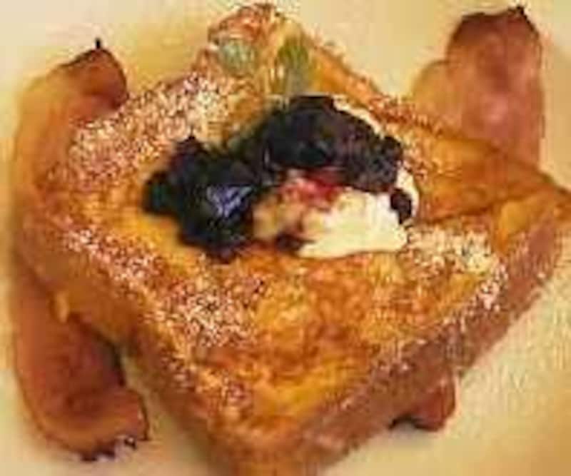 朝食です。 中でもRestaurant Awardを受賞したこともある、サンフランシスコの朝食屋さんで食べた いちご、あるいはバナナがどっさり乗ったフレンチトースト。 朝から賑わう明るく清潔なテーブルとコーヒーの香り、とびきりの朝食のイメージは、 お店がなくなってしまった今も、心の中にくっきり存在しているのでした。  ホテルのコーヒーショップや、地方のロードサイドにある食堂のフレンチトーストは、 薄い食パンを2枚ほど重ねてあって、そこにアイスクリームサーバーで乗せたような ホイップバターが乗っています。こういう店では大抵、ベーコンかソーセージが脇に添えられてきます。 メープルシロップはテーブルにあって自分でかけて食べます。 (日本のファミリーレストランにも、それと似たメニューがありますね。) 生地はあまり甘くなく、飾気もないけれど、それはおやつやデザートではなく、堂々と食事としての 地位を確立しています。 日本のカフェのフレンチトーストは、この国のパンの存在同様に「遊び」もあり、 もうすこしおやつ風、デザート風なところもあります。 でも、そこには思いがけない発見があるので、これもまた、家で作る時のヒントになります。 いくつかご紹介いたしましょう。  NIGIRO CAFE(ニギロカフェ/吉祥寺)は食パンで柔らかいですが、オレンジピールのアクセントが 爽やかな感じ。サワークリームとブルーベリージャムが乗っています。メープルシロップをかけていただきます。  Bowery Kitchen(バワリーキッチン/ 駒沢)のフレンチトースト。 フレンチトーストにかけられていたカラメルソースの焦がした砂糖の風味は、新しい発見でした。 オレンジのリキュールの香りもほのかに漂います。何度も注文してしまう、好きなメニューです。 最近のフレンチトーストはオレンジの風味が流行でしょうか。 また、ホイップクリームやサワークリームを 乗せて出す店も多いようです。  Table Modern Service(テーブルモダンサービス/自由が丘)のフレンチトースト。 コーンフレークスのようなものをまぶして焼いてあり、カリッと楽しい音がします。 シロップとしてエスプレッソソースが別添えになっています。 こういうカフェでは、午前中でなくても注文することができるのが、 フレンチトースト好きには嬉しいことかもしれません。 NIGIRO CAFE 東京都武蔵野市吉祥寺南町1-9-6 TEL 0422-40-9533 Bowery Kitchen 東京都世田谷区駒沢5-18-7 TEL 03-3704-9880 Table Modern Service 東京都目黒区自由が丘2-17-8 3F TEL 03-5729-7160 【関連記事】 フレンチトーストバラエティ ( 東京カフェマニア対談) 【おすすめリンク集から】 パンを使った料理 |