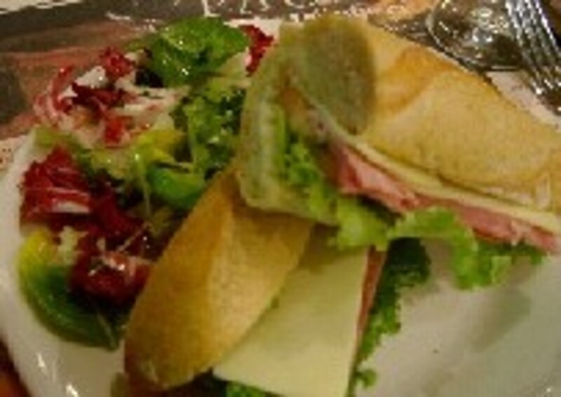 カフェのメニューではチーズとハムのサンドウィッチ、アンシェン・ミックス(左下)を始めとするサンドウィッチ、サラダ、ケーキはヴォリュームがありますが、キッシュはそれに比べて普通の大きさ。コーヒーは深い味わい。