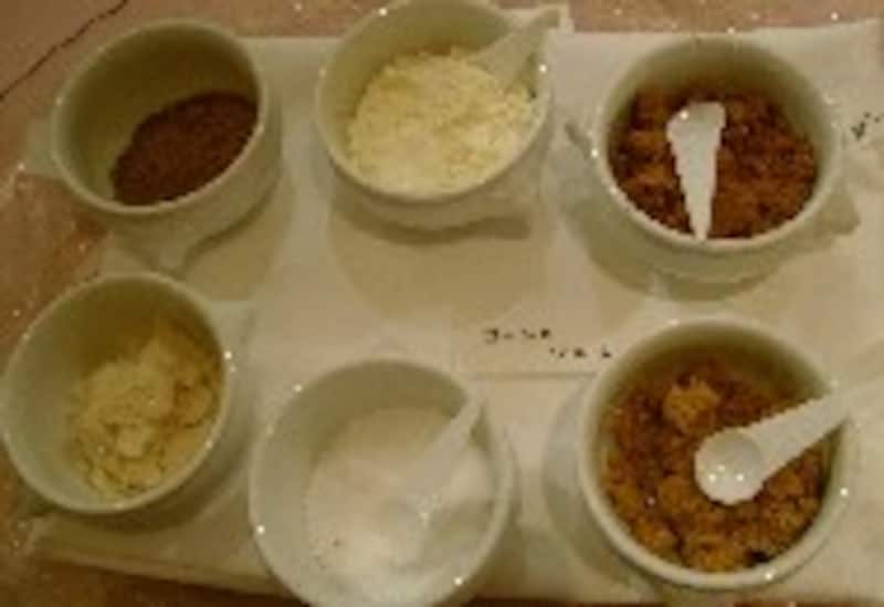 | マフィンや全粒粉のパンは、小麦粉もアメリカのものがより本場の味に近づくのだそう。 | ベーグルにこれを使うとちょっと本格的な気分、というコーシャーソルトは ユダヤ教会公認の100%天然塩。各種砂糖のテイスティングもしました。 |