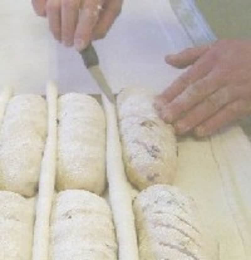 昨年末で開店一周年を迎えたブーランジェリ アンジェリックベベ 。 ホテルを出て独立、東京都北区に店を構え、自分なりのパンを追求してゆくという道を選択したシェフの戸島康雄さんは今どんなパンを焼かれているでしょう。前回の取材は開店直後でしたが1年後の今、地域と馴染み、どう変わっているだろうという興味もあります。 相変わらずわたしの中で最高のバゲットのうちのひとつ、べべのバゲットを思い浮かべながら出かけました。車だと楽ですが電車だと 最寄の駅は南北線の王子神谷。駅から10分ほど通りをまっすぐ歩きます。べべのパンが手に入ると思えばそのくらい何ということはありません。(でも絶対に入手したいのであれば予約をおすすめします。現にこの日、目の前ですべてのバゲットが売れてしまいましたので。) それではパンをレポートしましょう。 長時間発酵で一日15本ほどしか焼かれないバゲットは150円。 トーストブレッドという名前の山型食パン(300円)も、じっくり中種をとって長時間かけてモチモチした生地に焼き上げられています。これはホテル時代にルームサービスで出していたパンなのだそうです。 パン屋さんでは仕込みの時、翌日どのくらい焼くかを決めなければなりませんが、このトーストブレッドが売れ残ってしまったある日、明日はそうならないように他のパンにしてみよう、と同じ長時間発酵の生地で作った細長い白焼きのパン、フォカッチャ、ツイストドーナツ。それらは生地が美味しいと好評で今では毎日焼かれています。 月水金に焼かれるずっしりしたライ麦パンは酸味を感じさせず、バゲットのようにどんな食事ともよく合います。ライ麦を50%配合しています。 ハード系のパンではクランベリーとヘーゼルナッツの入ったカンパーニュもナッツの香りが洒落ていて、おすすめです。 惣菜パンではルッコラを使ったピザやローズマリーのフォカッチャなども良いですが、街のパン屋さんの定番、カレーパンがまた美味しいのです。 自家製のカレーは豚肉、ナス、ポテト入りでこっくりとした辛さです。 次はスウィートな菓子パンをご紹介します。 12次のページへ
