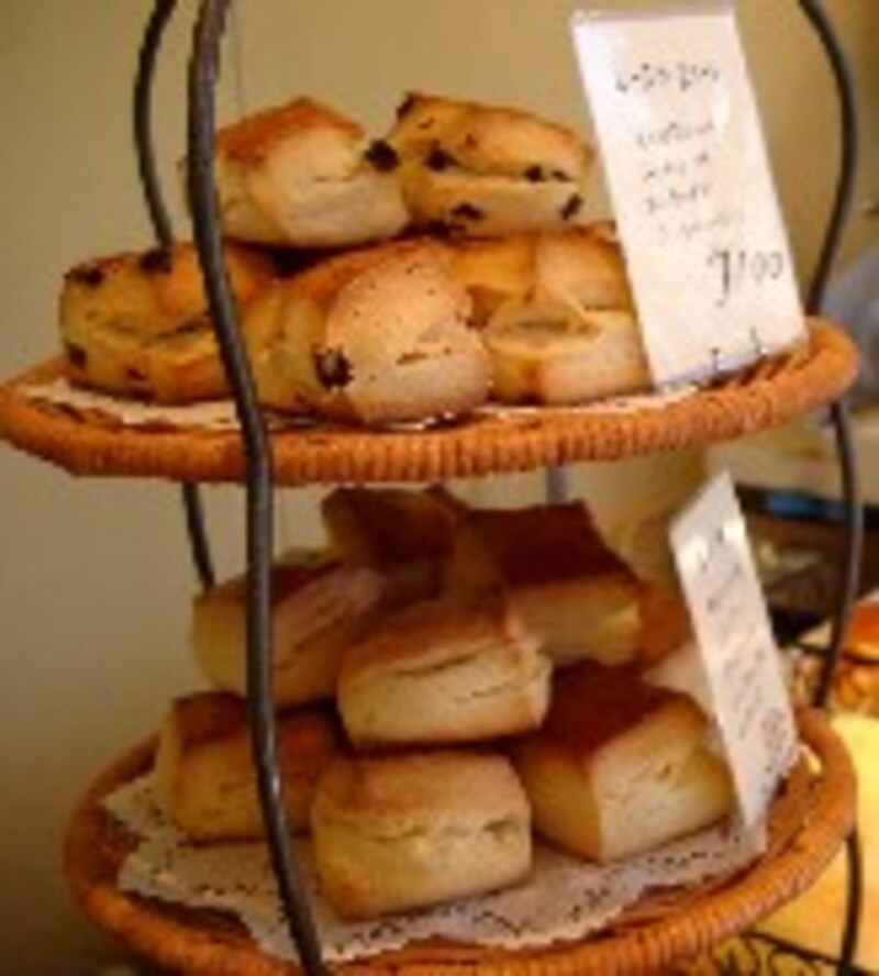 ![]() ![]() (右) 土曜に焼かれる洋菓子風な季節のタルト パイナップル入りの練乳クリームを挟んだバトンオレなどはきっと甘党に人気のことと思いますが、 開店以来の一番人気は、やはりあんぱんとメロンパン(各120円)です。 ベベのあんぱんは前回書いたとおりかなりおすすめですが、栗のあんぱん(150円)も街のパン屋さんの「一般的な栗のあんぱん」のちょっと上を行っています。戸島さんいわく「これは素材が高価なので試食をお出ししていないから皆気がつかないけれど」包まれたあんはフランス産の栗なのでした。そう、ちょっとグレイッシュな洋菓子によく使われるあの栗です。 今の季節のデニッシュはブルーベリーとクリームチーズ、苺とフランボワーズ、栗とチョコレート、と魅惑的な組み合わせです。 最近の新作パンではレーズン入りのブリオッシュにカスタード、アーモンドクリームを絞り、りんご、杏を巻き込んでリング状に焼いた クーロンヌフリュイ(450円)がおすすめとか。この辺は洋菓子みたいですね。 発酵バターのクロワッサンなどは、ホテル出身のシェフだけあって上質なサクサク感。