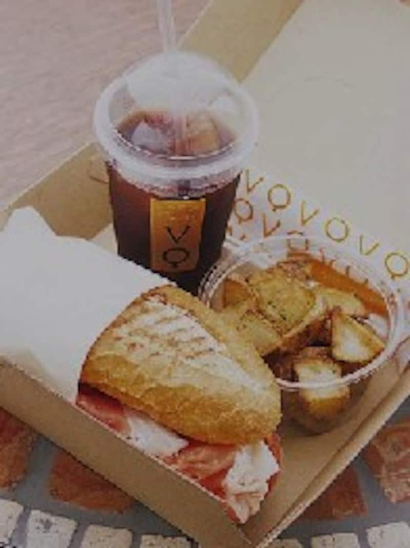 に昨年末にオープンしました。 パニーニはご存知の通り、サンドウィッチのことで、上下2枚をプレスして焼いたものが日本ではポピュラーです。  VIA QUADRONNO ヴィア クアドローノのパニーニはオリジナルレシピをもとに日本で作られたフランスパンをパニーニグリラーと呼ばれる器械でプレスして具を挟みます。主役はイタリアのレボーニ社の上質な生ハム類。 ランチの日替りパニーニは軽い味付けのポテトと飲物で1000円。この日の ヴィアクアドローノは、スペックとブリーチーズにケッパータルタルソース。 タルタルソース?そう、経由した米国の風味が入っているようです。 スペックとはスモークの風味豊かな生ハムのことでこちらは正真正銘イタリアンテイスト。全部で6種類のハムは、パニーニにすることを前提にごく薄くスライスされており、その味と薫りは素晴らしいものです。 テイクアウトボックスも↓  これを満喫したいという方は単品を挟んだシンプルパニーニをどうぞ。スペックの他、最高級パルマ産プロシュート、コット(ロースハム)、ピスタチオ入りボローニャ産生ハム、パンチェッタ、コッパ(低脂肪ハム)があります。 人気のラ・マドゥニーナはパルマ産プロシュート、モツァレラ、ブラックオリーブパテ、フレッシュトマトのパニーニ、 東京だけのクアトロフロマッジは4種のチーズ(モッツアレラ、ブリー、ゴルゴンゾーラ、フォンティナ)のパニーニです。他にもいろいろあります。 産地直送のJAS認定有機野菜やウッドロースター焙煎法の豆を使ったエスプレッソにもこだわりが見られます。  Today's Salad Plate→ ハムとチーズがのったサラダ この店のもうひとつのパン、チャバタはつまめる大きさのものがサラダと共に別皿に盛られて出てきます。オリーブオイルとオレガノの風味。 ピザや魚介類のメニューもあるのでカンパリやベリーニなどと共に軽いディナーというのも良さそうです。  VIA QUADRONNO (ヴィアクアドローノ) 東京都港区東新橋1-8-2 カレッタ汐留2F TEL 03-6215-8212 平日10:00-22:00(L.O) 土日祝11:00-21:00(L.O) 年中無休(カレッタ汐留休業に準ずる) 【関連記事】 青山店速報(2003.6) 【カレッタ汐留関連】 アンデルセンファブリック |