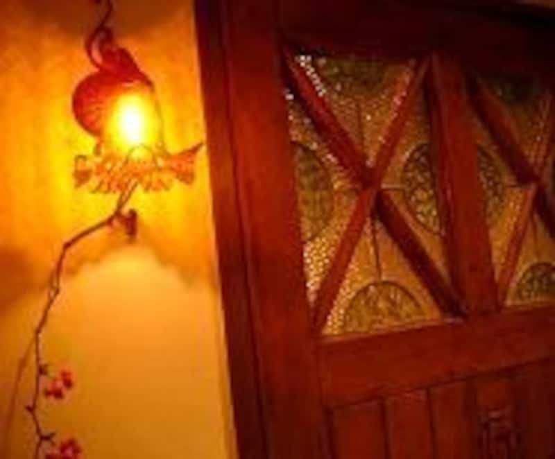 外から階段を上り、ステンドグラスの入ったドアを開けると、照明を落とした静かな空間が迎えてくれます。
