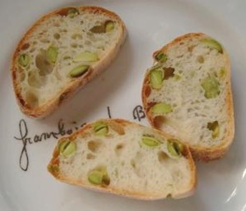 ショウガを3回茹でこぼしてアクを抜き、蜂蜜煮したものをシロップごと使ったパン。半透明の気泡のあるみずみずしい生地からほんのりと、ショウガの香り。 レシピは「人気ブーランジェが教える評判のパン」に掲載されています。 ■ユーハイムディーマイスター 千代田区丸の内2-4-1 丸ビルB1F TEL : 03-5220-3301 http://www.juchheim-die-meister.com/ ペルティエの枝豆のリュスティック