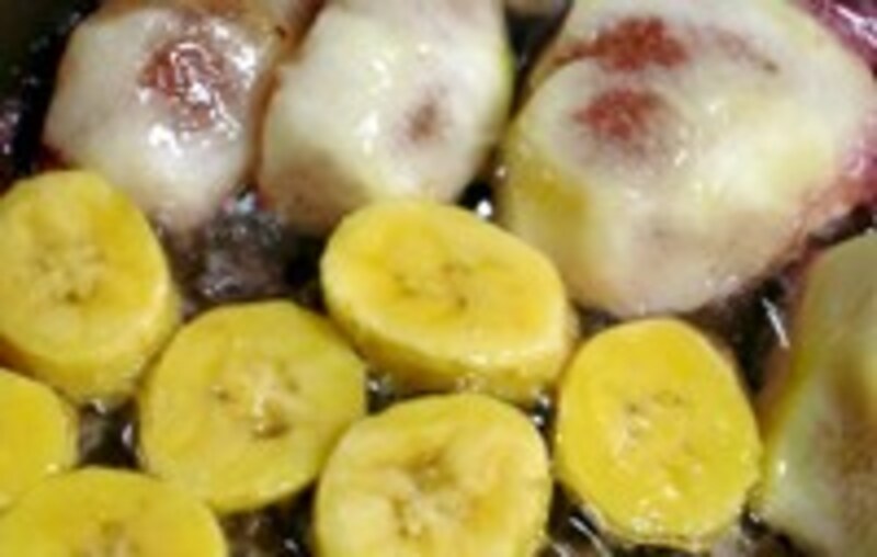季節のフルーツで固めのものを選びます。りんご、洋梨、柿でも美味しく作ることができます。![]() 無花果 | ![]() モンキーバナナ |