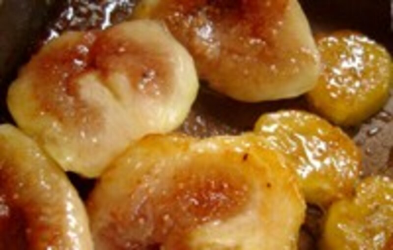 フライパンにグラニュー糖を入れ、溶けて泡立ち薄く色づくまで熱し、バターと1を入れて崩さないようにからめる。