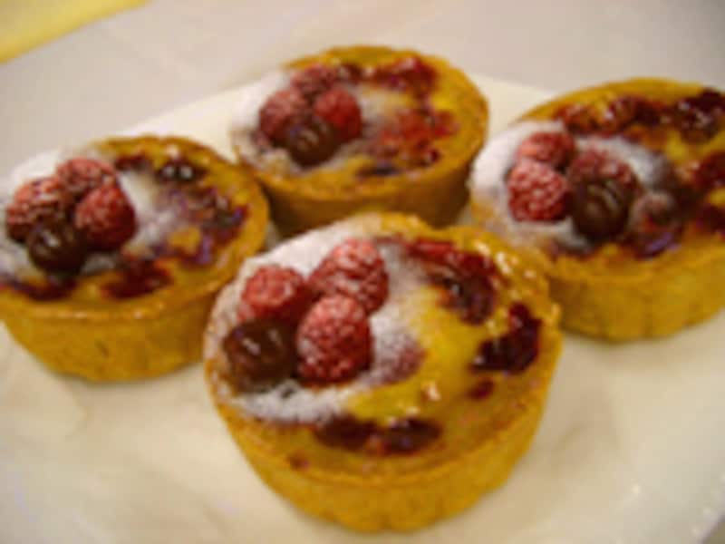 ![]() | 菓子として、クラフィティー2種(冷凍のグリオットチェリーとフランボワーズ、生のイチジクと洋梨)、ピスタチオ入りのフィナンシェが紹介されました。 こういうお菓子があるパン屋さんは日本では少ないので差別化が図れると思います。 |