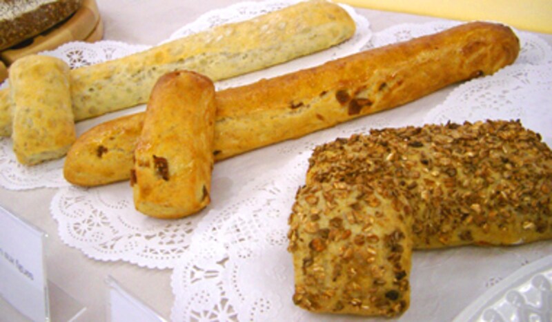 ル・パン・スポルティフ(上右)はドライアプリコットと皮なしのヘーゼルナッツ入り。鉄分とミネラルがあるのでスポーツする人に食べてほしいということでこの名前。表面にまぶされているのは今回は発芽小麦フレークですが、ナチュール・ド・パンでは通常はそば粉を使用。