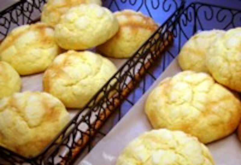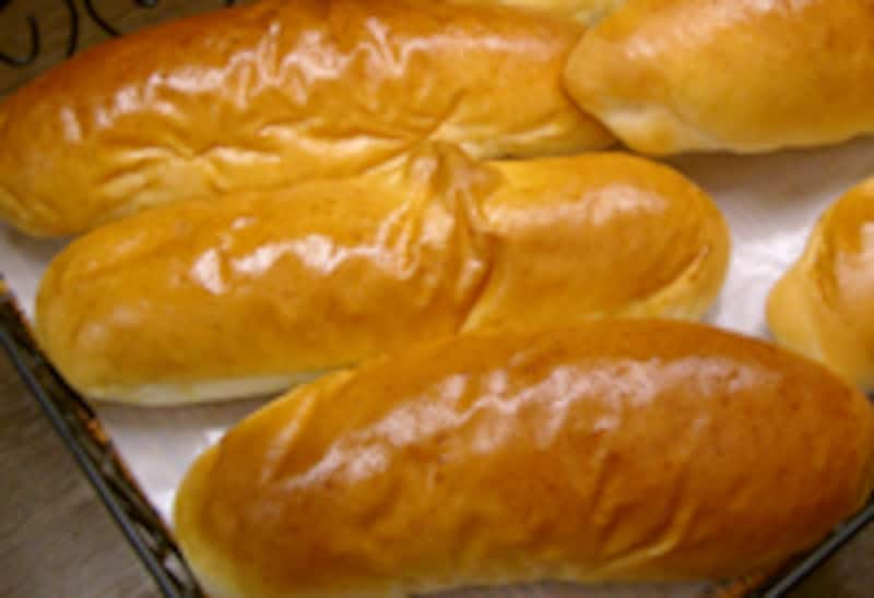| ジャムなど挟んでもくれるコッペパン | メロンパンは白餡入りもある |