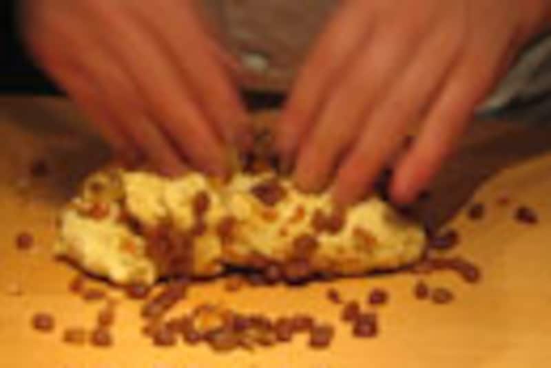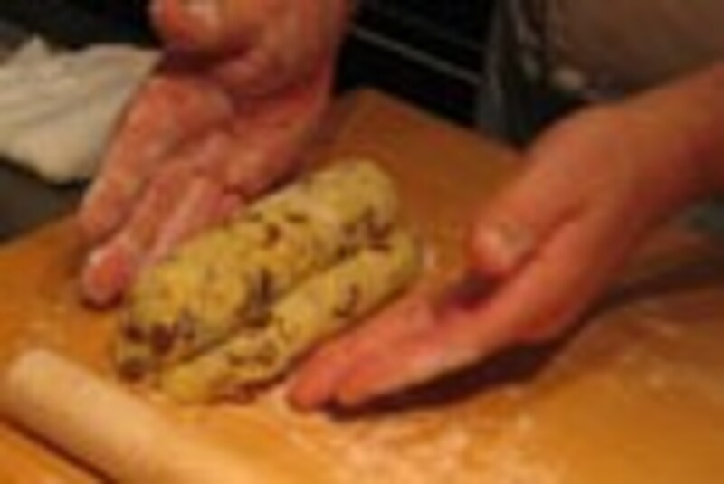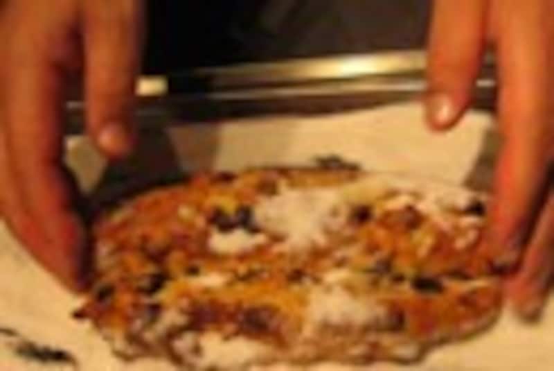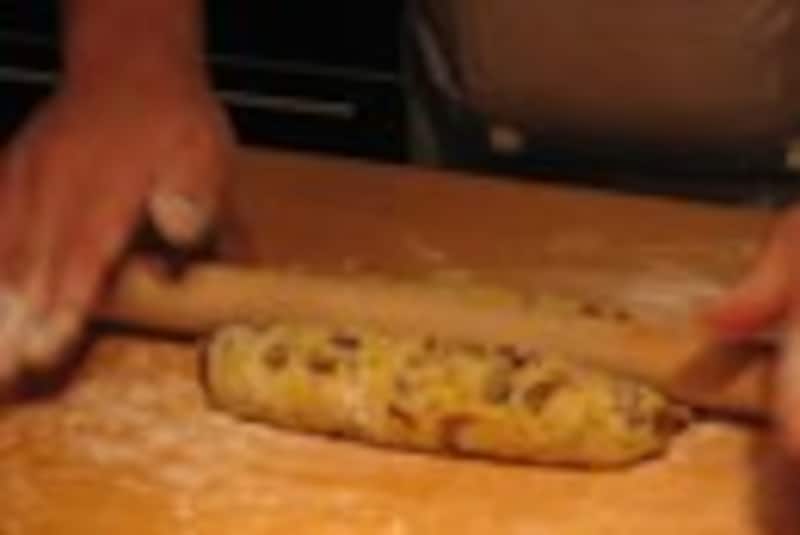 シュトレンに入れるのはラムレーズン、レモンピール、オレンジピール、アーモンド。生地にはマジパンが練り込まれています。とてもシンプルに感じました。
