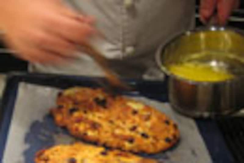 | 焼成後バターを塗る | グラニュー糖をまぶす | 粉糖を振る |