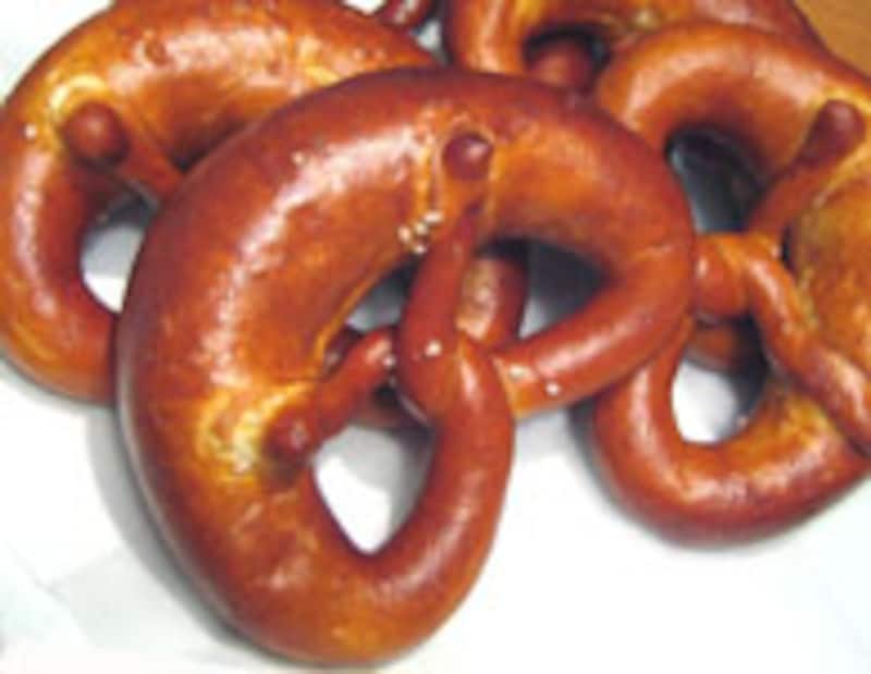 プレッツェルはカイザーゼンメルと並んでサイラーさんの店で一番人気のパン。 こうばしく、アルペンザルツ(塩)がアクセントとなってパンの味をひき立てています。これは無塩バターやソーセージと、とてもよく合います。