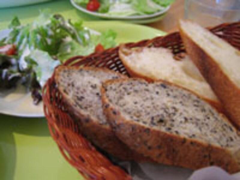 その晩、遅い時間だったのに思わず立ち寄ってしまったのは、看板に「BAR 」「パンの国」とあって、温かい色の明かりが灯っていたから。 「パンの国」なんて、惹かれてしまうではないですか。 パンの販売時間は既に終わっていましたが、幸運にもお店の人がまだいらして、わたしはそこで明かりと同じ色のパンオレザンに出合ったのでした。 その味が忘れられられなくなり、今度はパンのそろう昼間に行くことに。