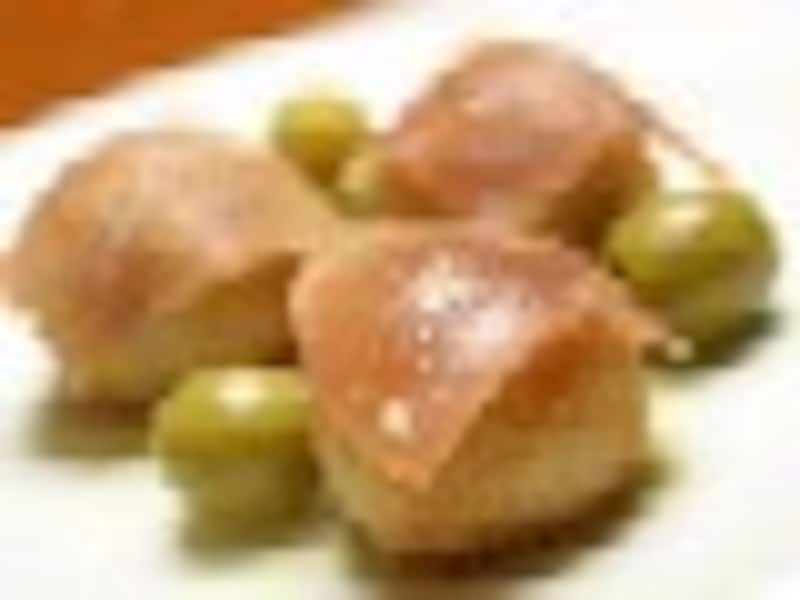 ひよこ豆と鱈のローズマリー風味、ひよこ豆プレーン、黒オリーブのペースト |