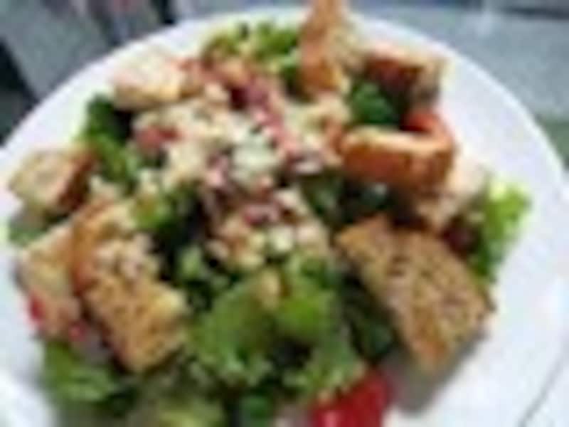 心もからだも満ちたりるようなたっぷりの野菜とパンのサラダ |