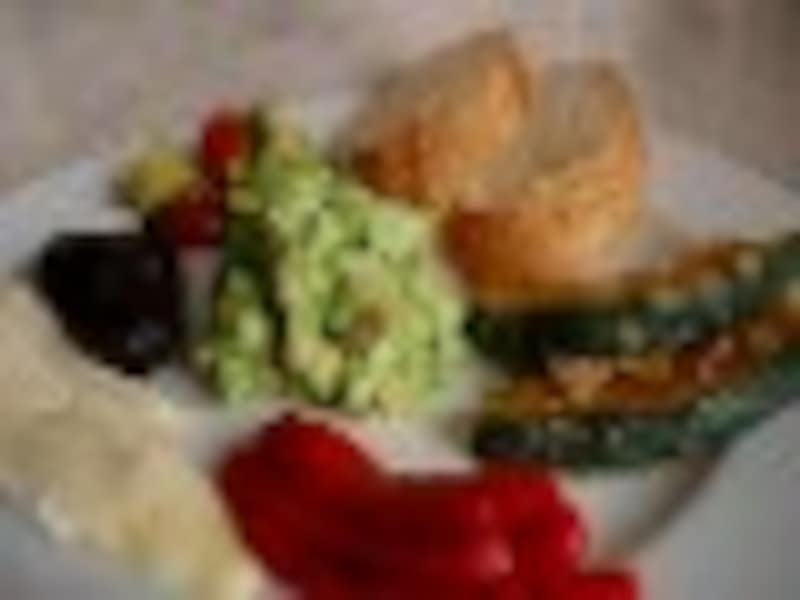 茄子、枝豆、かぼちゃ、アボカドを使った賑やかな一皿 |