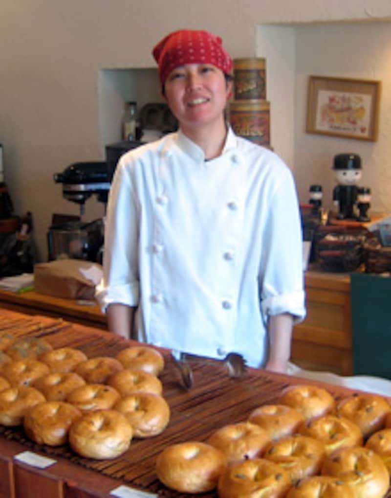 カフェの人気メニュー、ベーグルプレートはスープと小さな料理と飲物つきで1000円。写真のキッシュの他、自家製のポークテリーヌやパルマンティエ(マッシュポテトと挽肉)など常時3種類ほどあります。これからの季節は野菜のテリーヌ、鯵のエスカベッシュなどが登場予定。 カフェのベーグルはサンドウィッチではなくそのままか、料理といただくスタイル。それは他のベーグル屋にはないユニークな組合わせです。 ベーグルショップ?カジュアルフレンチのカフェ?ポム ド テールは、ひとことでいうと何の店でしょう?返ってきた答えは「ベーグルのためのカフェ」でした。 ここから生まれるさまざまなベーグル、新鮮な組合わせが今後も楽しみです。 地方から訪れる人もある人気店となり、工藤さんは「製造数や電話での応対などひとりで作るということには限界があり、お客さまに迷惑をおかけしていることと思います。」と大変そうですが、こんなふうにも言います。 「いろいろな職場を経験してきた中で、丹誠込めて作った食べ物がたくさん廃棄されていくのを目にし、悲しくて泣いたことがあります。もっとお客さまに応えるため、たくさん作ることができるよう、人や機材を揃えるべきかもしれませんが、作ったものをすべて食べていただけるという今の状況は幸せなことだ、と思いながら作っています。」 自分のベーグルを廃棄という憂き目にあわせない。それは作り手としての責任、ベーグルに注がれる愛情かもしれません。おいしさの秘密がここにもうひとつありました。 ※リニューアル後、カフェは営業されていませんが、ベーグルは販売(テイクアウト)しています(2015年追記) ■ポム ド テール 杉並区西荻窪北4-8-2 電話 03-5382-2611 営業時間12:00~17:00 火・水曜定休 【関連サイト】 ベーグル専門店のサイト ベーグル好きのサイト |