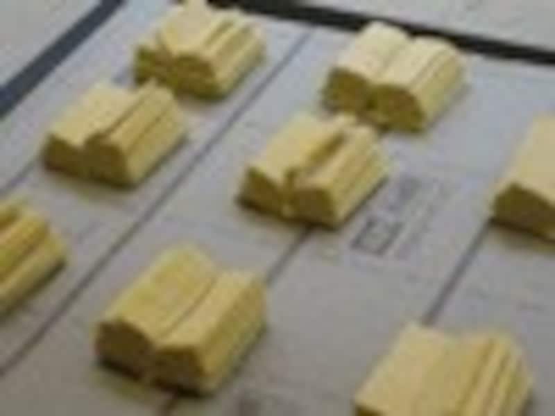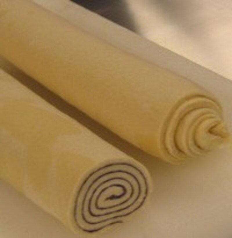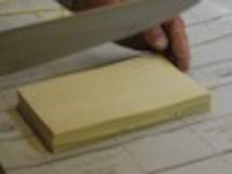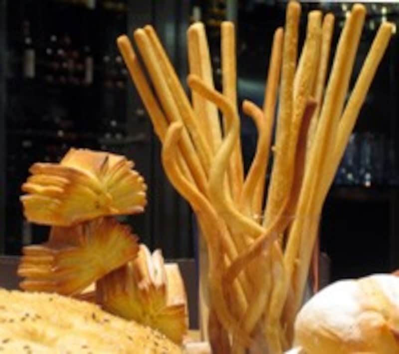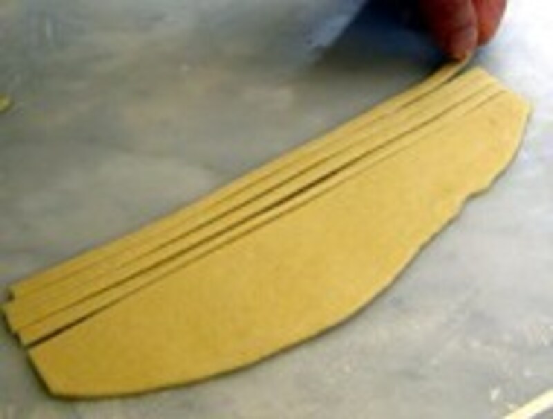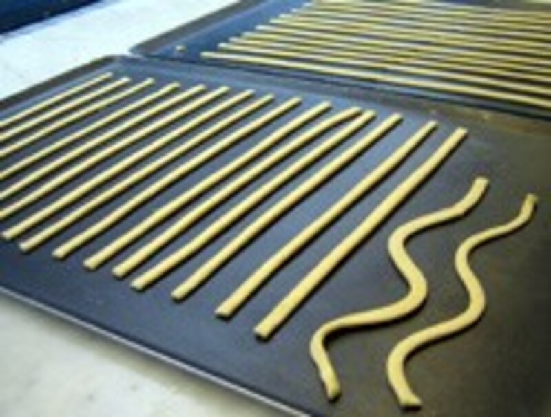 グリッシーニは硬い生地。これもパートブリゼ(タルト生地)のように2~3ミリの厚さに伸ばします。プレーンなものと、オリーブオイルを塗ってクミンシードあるいはパルミジャーノ・レッジャーノを振ったものを作ります。