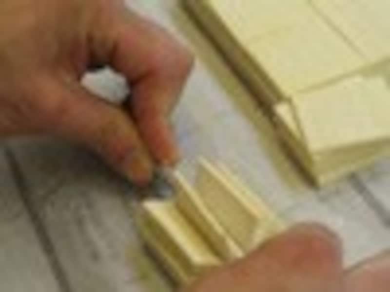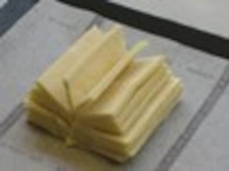 リーヴル グリッシーニリーヴルはセモリナ粉入り。モナコのルイ・キャーンズで出している、本を開いた形のパンです。1ページずつきれいに見せたいので均一な厚さに伸ばしたら打ち粉をたっぷり振ります。