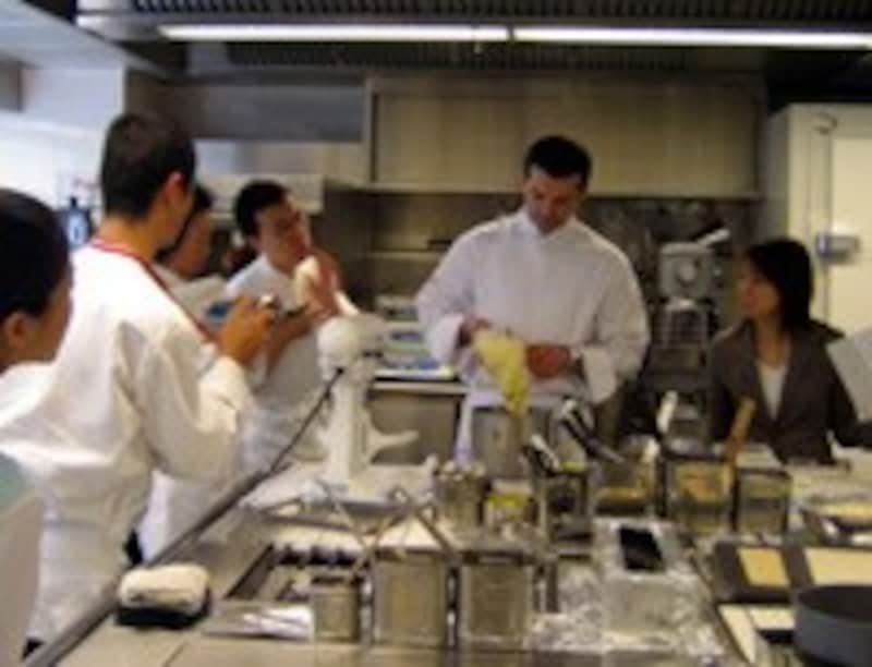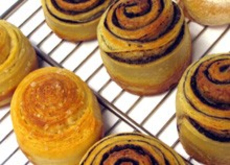 受講生からは、こうしたヒントのひとつひとつ、手法や発想に新しい発見がある、という共通の意見があがりました。 パン・ア・ラ・タプナード パン・オ・グロ・セル黒オリーブのタプナードを巻き込んだパン・ア・ラ・タプナード、ゲランド産粗塩を巻きこんだパン・オ・グロ・セルはどちらも タイプ55の小麦粉にバターもたっぷり入った生地。パン・オ・グロ・セルはBEIGE TOKYOでも出されているものでした。