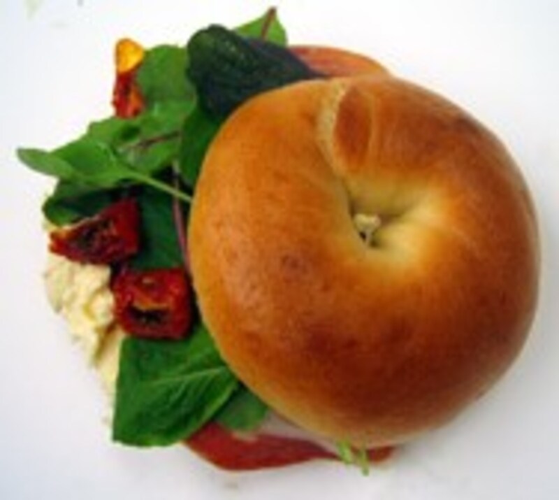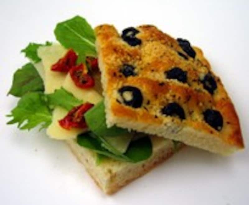同じくZOPFのフォカッチャとベーグルを使って、サンドウィッチを作ってみました。フォカッチャは、パルミジャーノレッジャーノとベビーリーフ(ルッコラ、マーシュ、デトロイトなど)を、ベーグルはクリームチーズと生ハムとベビーリーフを挟みました。そこに自家製セミドライトマトが加わることで、色と香りと味わいがパッと広がります。