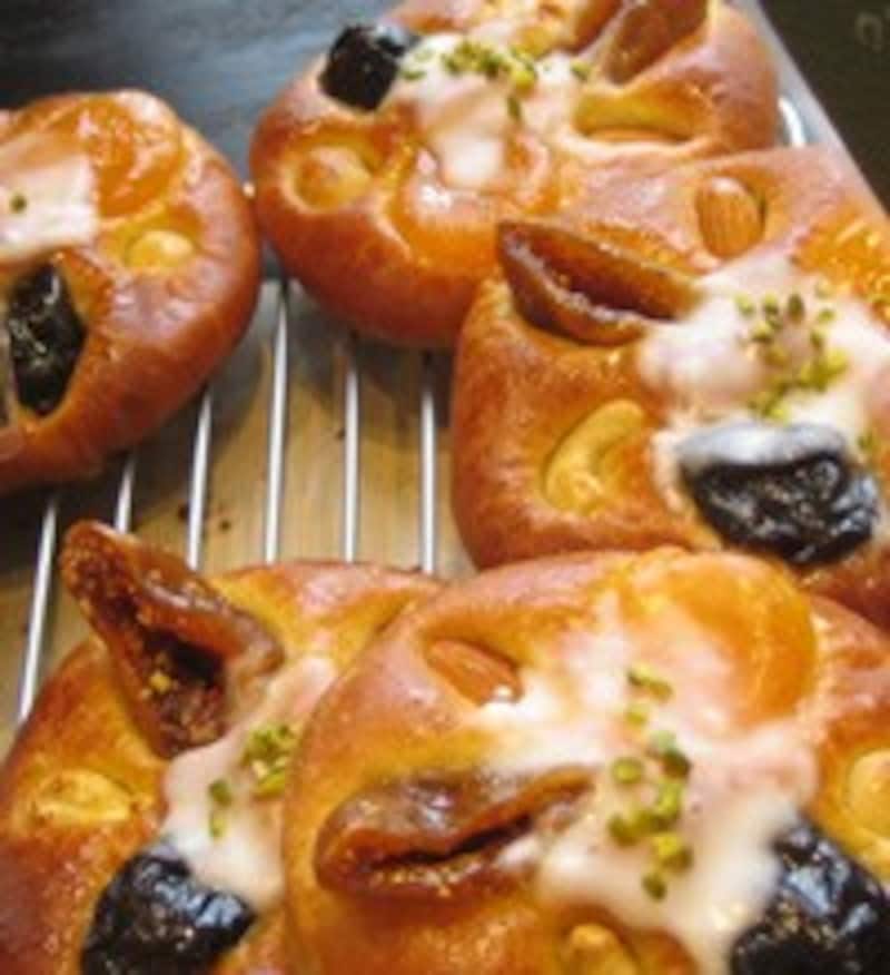 PAINDUCEの魅惑的なパンたち![]() 究極にシンプルでお洒落なサンドウィッチはスタッフにも人気 ![]() バターサンドの隣にあった洋菓子のようなパン ありそうでなかなかないのが、バターだけをサンドしたパン。バターとパンが共に引き立て合う抜群の美味しさでした。バゲットリュスティックもそう。プレーンな食事パンに、しっかりと小麦の味わいがあるのを感じました。 スイート系も魅力的なものが揃っています。迷ったら、米山さんご自身が好きなクレームダマンドを使ったものがおすすめです。 PAINDUCEのパンには面白いネーミングのものがあります。例えばドライフルーツがたくさんのったブリオッシュは「MORITAKUN」。ドライフルーツといえば、ベストパンのパーティで美味しいドライフルーツをご提供いただいたあの森田さんのことに違いありません!