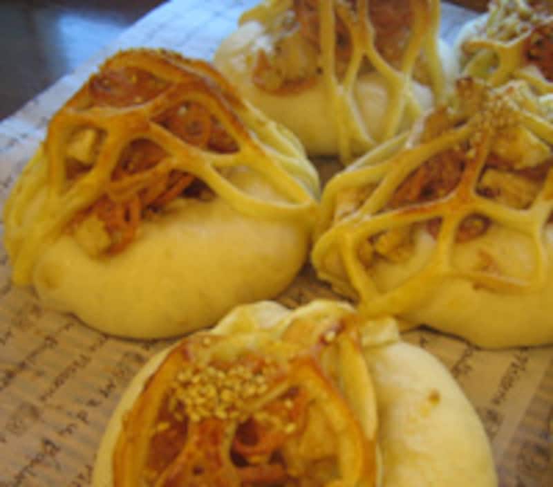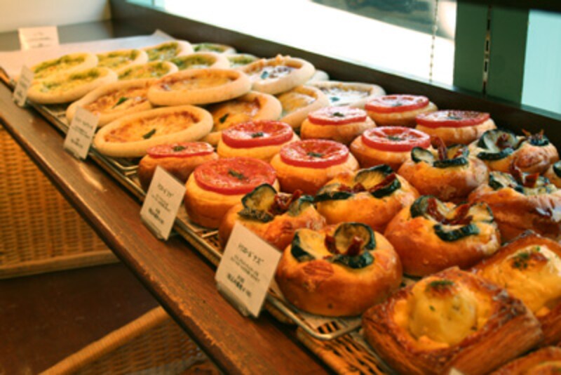 マガジーヌとダノワーズマロンADF+TSUJIのワークショップで本のかたちのパン、リーヴルに出合って感動した ことを友達に話すと、「この間の講習会でマディの松原さんは雑誌のかたちのパンを作られていましたよ。」と教えてくれたのがきっかけで代官山のパティスリーマディを取材しました。OPENは7年前だけれど、All Aboutのベストパン人気投票でも毎年票が入る人気店です。![]() ダノワーズマロン(左)、マガジーヌ(右) 雑誌をくるくるとまるめたような素敵なかたちのマガジーヌはザクっとした食感。チョコレートが通常の2倍。普通のパン・オ・ショコラではチョコレートが足りない、と思っている方におすすめです。 マガジーヌの隣で負けずに美味しそうな表情をしていたのがダノワーズマロン。マロンクリームを詰めたサクサクのデニッシュで、こちらはスーシェフの塩塚雅也さんの作品。そう、思わず作品と呼びたくなってしまうパン達です。 ランチタイムお昼時になると惣菜パンの焼き立てがどんどん並んでいきます。マディの地下にはパンとお菓子の工房があって、たくさんの職人さんが働いています。作りたてのパンやケーキが店頭に並び 、系列のカフェにも運ばれます。ハード系の食事パンからダノワーズまでこれだけ揃うのはここ代官山店のみ。スイートロール生地にナスやドライトマトを使ったトリコロールナス、ピリ辛レンコンとチキンのロータスなど、昼時にはお惣菜パンがたくさん並びます。 ![]()