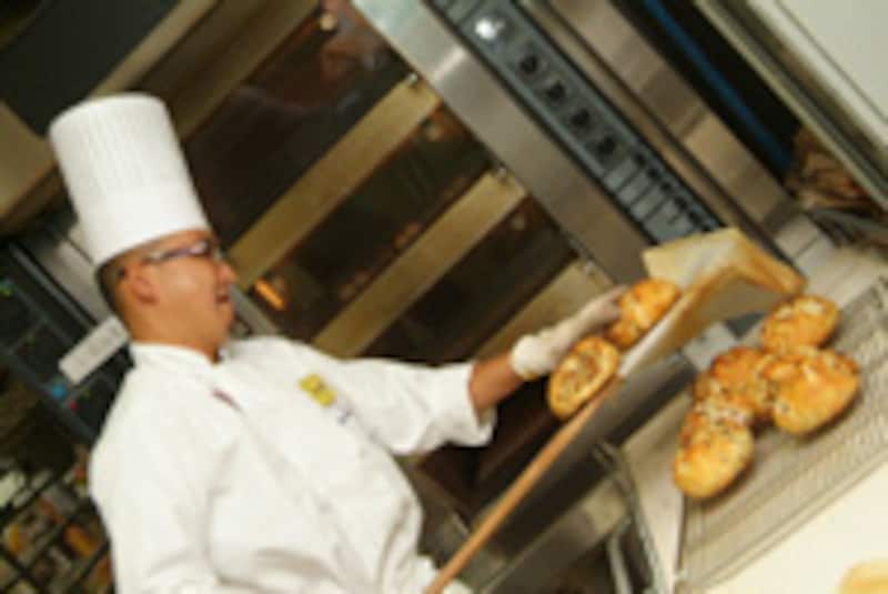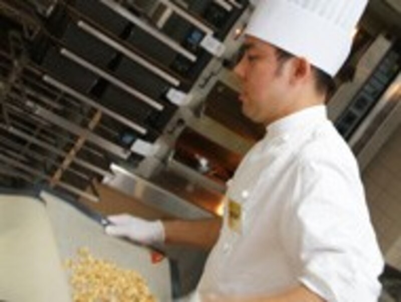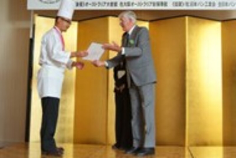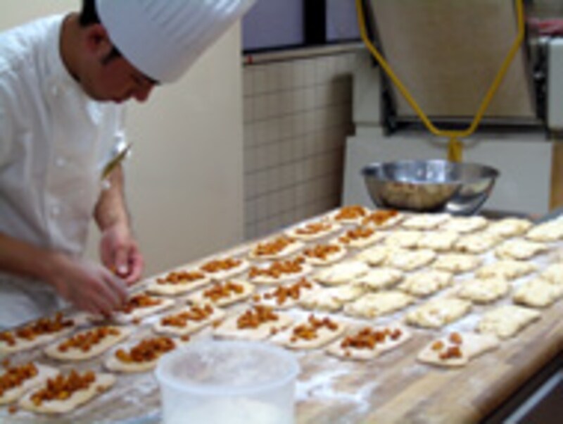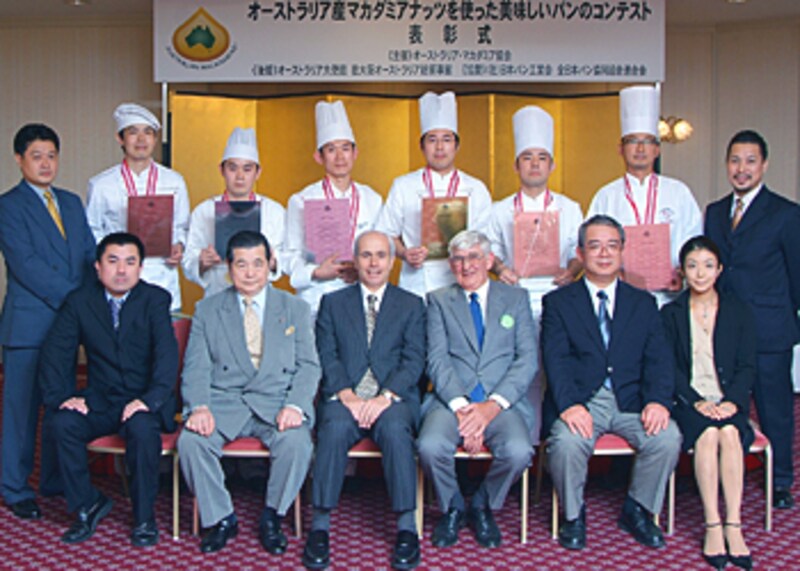ジャガイモ入りの2種の生地、黒胡椒入りとキャラメルナッツ入りの生地を重ね、そこにさらにキャラメルナッツとブルーチーズを包んみこんだパン。熱々のキャラメルナッツをひとつひとつ剥がすのが大変な作業でした。 初審査の感想マカダミアナッツ抜きでもおいしいパンがたくさんありました。しかし、このコンテストは「オーストラリア産マカダミアナッツ を使った美味しいパンのコンテスト」です。そのため、いかにマ カダミアナッツをうまく活かしているか、おいしくて独創的かと いうことに審査のポイントをおくようつとめました。初めての審査員という立場で緊張しましたが、参加者に対し、このコンテストに続く日々の仕事のための助言や、緊張をほぐすための冗談を、審査と並行させていた他の審査員の方々のやさしさに感動しました。 慣れない設備の中で新しい素材に挑戦した参加者の皆さま、お疲れさまでした。 審査員の評価は、よい刺激になるかもしれませんが、お客さんの評価はもっとうれしいはず。 おいしいマカダミアナッツのパンを、今度はお客さんのために焼いてください。 ありがとうございました。 ![]() 【関連サイト】 オーストラリア・マカダミア協会 http://www.macadamias.jp/ |