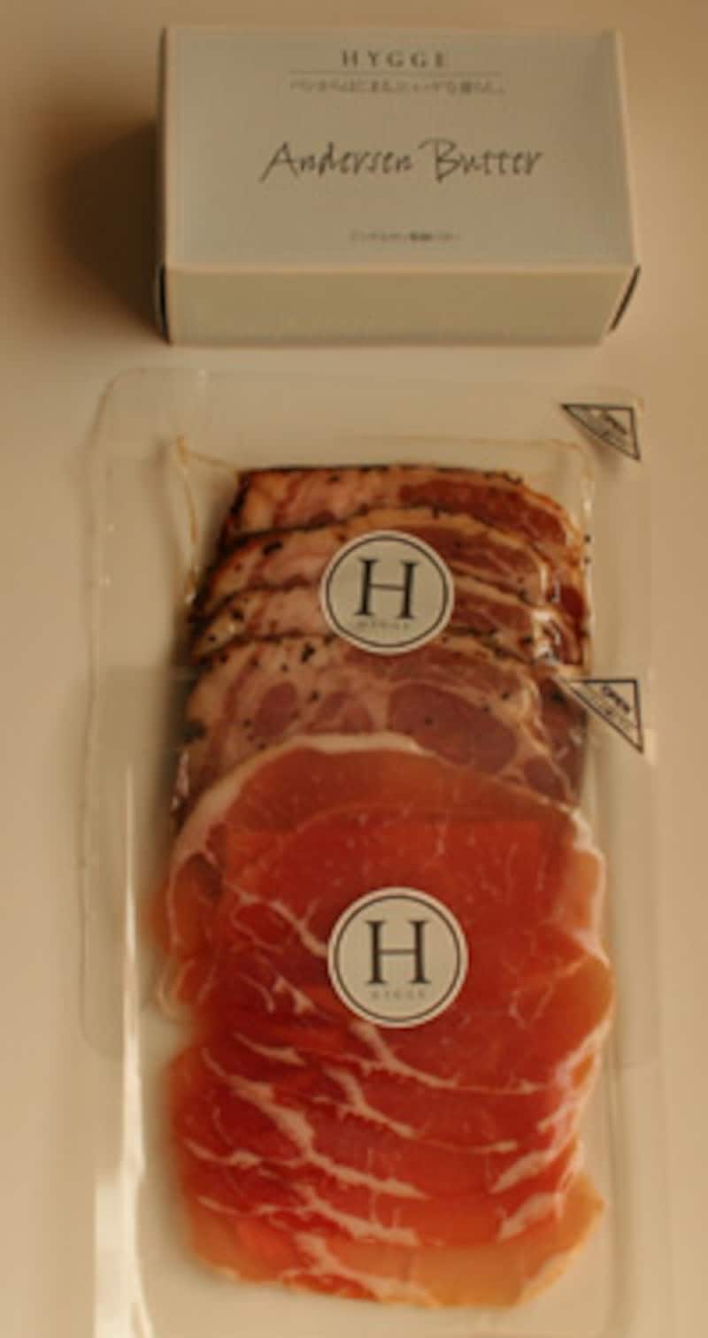 旨みたっぷりの豚肩ロース肉にブラックペッパーがきいたハム。HYGGE(ヒュッゲ)とはデンマーク語で「人と人とのふれあいから 生まれる温かな居心地のよい雰囲気」の意味。 アンデルセンのプライベートブランド。