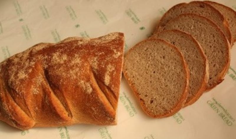 オーガニックのライ麦70%の、目が詰まったしっとりとしたパン。 薄くスライスしてバター、ハム、チーズでオープンサンドに。