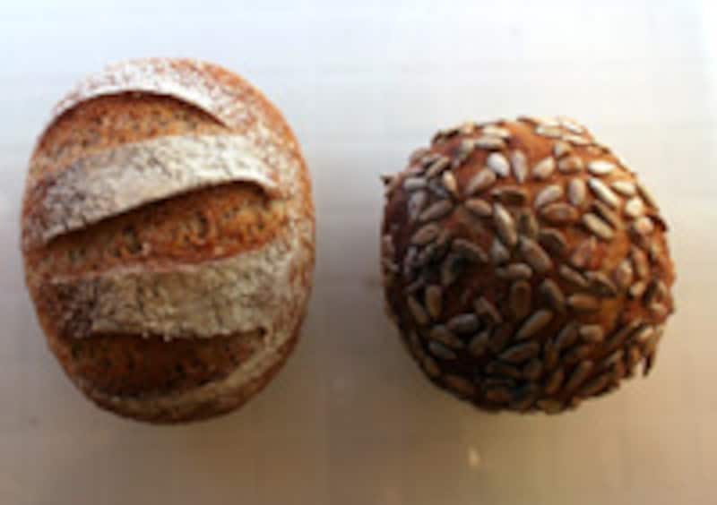 Boule Beurreのパンフランスパンやドイツパン、日本の菓子パンもあるBoule Beurre。なかでも草野さんはドイツパンが大好きで、いろいろ焼いていきたいそうです。自分の生まれた町の人たちが「フォルコンブロート?ああ、昨日食べたやつね。」なんて言ってくれたらいいなぁ、と想いを語ってくださいました。それではパンをご紹介しましょう。 ニコラ直伝のパートシュクレの皮がおいしいメロンパンは3種類。「はなみずき」はプレーン味です。あんCOCOとは、あんことココナツ。ひと味違ったあんパンです。