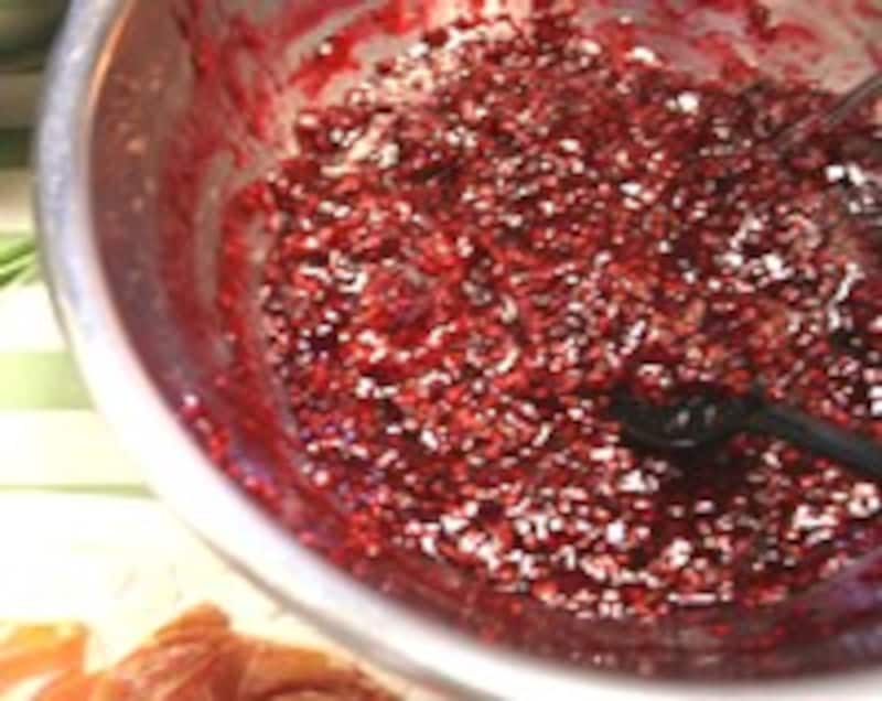 講師のいがらしろみさん 今回の講師は菓子研究家いがらしろみさん。 ろみさんのお店、洋菓子のようなジャム専門店、ロミ・ユニ コンフィチュールは一昨年にAll Aboutの記事でもご紹介しています。 セミナーは次の3部構成で進行しました。 「作る」・・・ジャムとスコーンのデモンストレーション 「知る」・・・フランスのお話、ろみさんの今までの道のり、ジャムへの想い 「食べる」・・・ジャムとパン、チーズ、ワインをあわせて愉しむ このページでは「作る」で実演されたジャム作りについて簡単にご紹介します。 セミナーで実演されたジャム作り目の前で短時間のうちに出来上がったのは3種類のジャム、アベイユ、ミミ、スーリール。ろみさんのつくるジャムには洋菓子のような名前がついています。お菓子を食べているときのような楽しい気分になれるように、素材や色、季節から思いついたものをネーミングするのだそうです。 その作業がまた楽しい、というろみさん。ちなみにこれらの名前は順に、みつばち、かわいい、ほほえみ、という意味です。