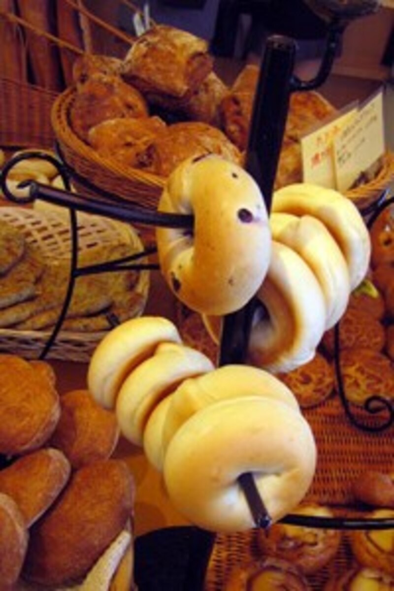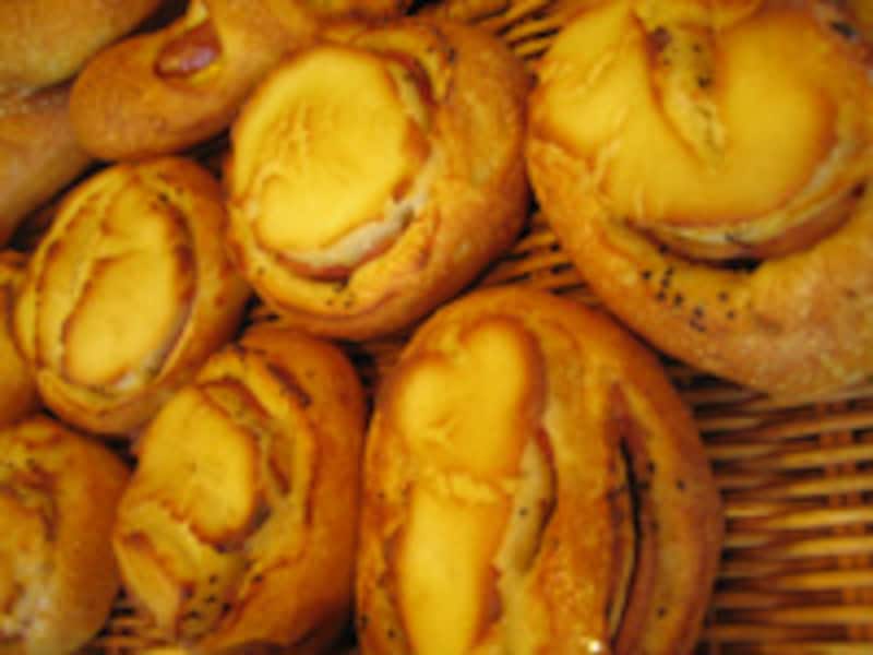 コンテストでグランプリをとったカラメルレーズン![]() カラメルレーズン 数年前、カリフォルニアレーズン協会の主催する製パン講習会で、コンテストでグランプリを受賞したカラメルレーズンというパンに出合いました。まわりはカリっと甘くほろ苦いクイニーアマンのような生地で、中身はたまご色のアーモンドクリームの生地。そのパンを作ったのが現在のブーランジュリーオーヴェルニュオーナーシェフ、井上克哉さんでした。 桜並木の通りにあるパン屋さん