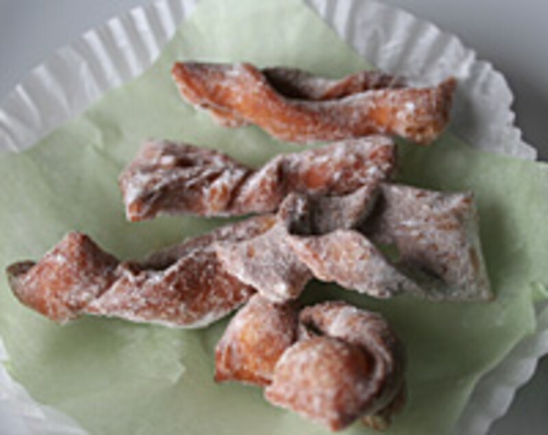 メテイユはライ麦50%のパン。 クーロンヌは大きな輪のかたちのカンパーニュ。 オーヴェルニャは大きなシャンピニヨン。どこかで見覚えがあると思ったら、ブーランジュリーオーヴェルニュで販売されていました。 サラダとお土産のパンお土産のパンはほんのり甘い栗とくるみのリュスティック・シャテーニュに、リヨン伝統の素朴な揚げ菓子、ビューニュ・リヨネーズ。