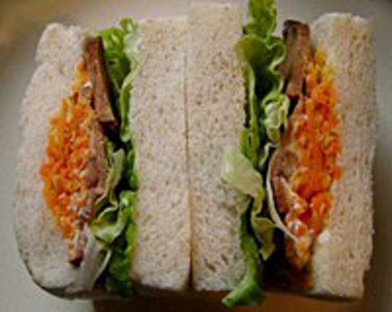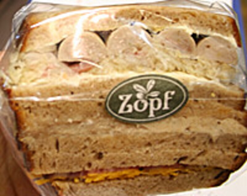カフェルーエプラッツ ツォップは遠来のお客さんが増えてきたこと、朝食をゆっくり外食できるところがあったらいいな、と思ったことがきっかけで2003年、店の上にOPENしました。 パン屋さんのカフェならではなのは、さまざまなパンの盛り合わせが料理によって変えられているということです。パンに温かい料理を合わせ、肉汁を浸ませて食べるなど、販売するだけでは表現できないパンと料理のおいしい組み合わせを実感してもらえる場所として、カフェは生かされています。 サンドイッチとFixing「サンドウィッチは常温で販売しているのですか」という質問が参加者からありました。やすともさんは、「どういう状態にしておくのがパンにとっていいか考えたら、冷蔵しないほうがいい。どうやったらおいしい状態で売れるか考えたら、場所がないこともあるけれど、売れ具合を見ながら4~6個ずつ作りたてを出すというスタイルになった」と答えていました。 作ったものがすぐ売れる店ならではのスタイルです。 サンドイッチの具材はカフェのスタッフが作り、食材やイメージする食感でパンの厚さも変わります。小さな手間が売れ行きに、すなわちおいしく食べられる状態に繋がっていくのですね。