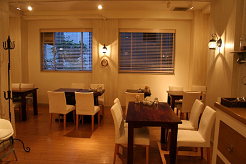 Amandineのカフェベーカリーから数段階段をのぼり、左手ガラス越しに厨房を眺めながら進むと、カリフォルニアの小さなホテルにありそうな雰囲気のカフェがあります。おすすめは平日11時~15時までのランチ。 スープセット、パスタセット、サラダセットなどがあるのですが、チキンシーザーサラダやレモンカルボナーラのタリオリーニなど、カリフォルニアを感じるメニューになっているところが特徴です。